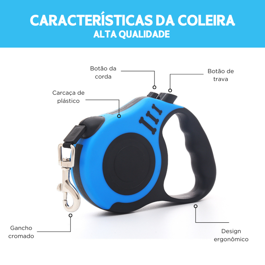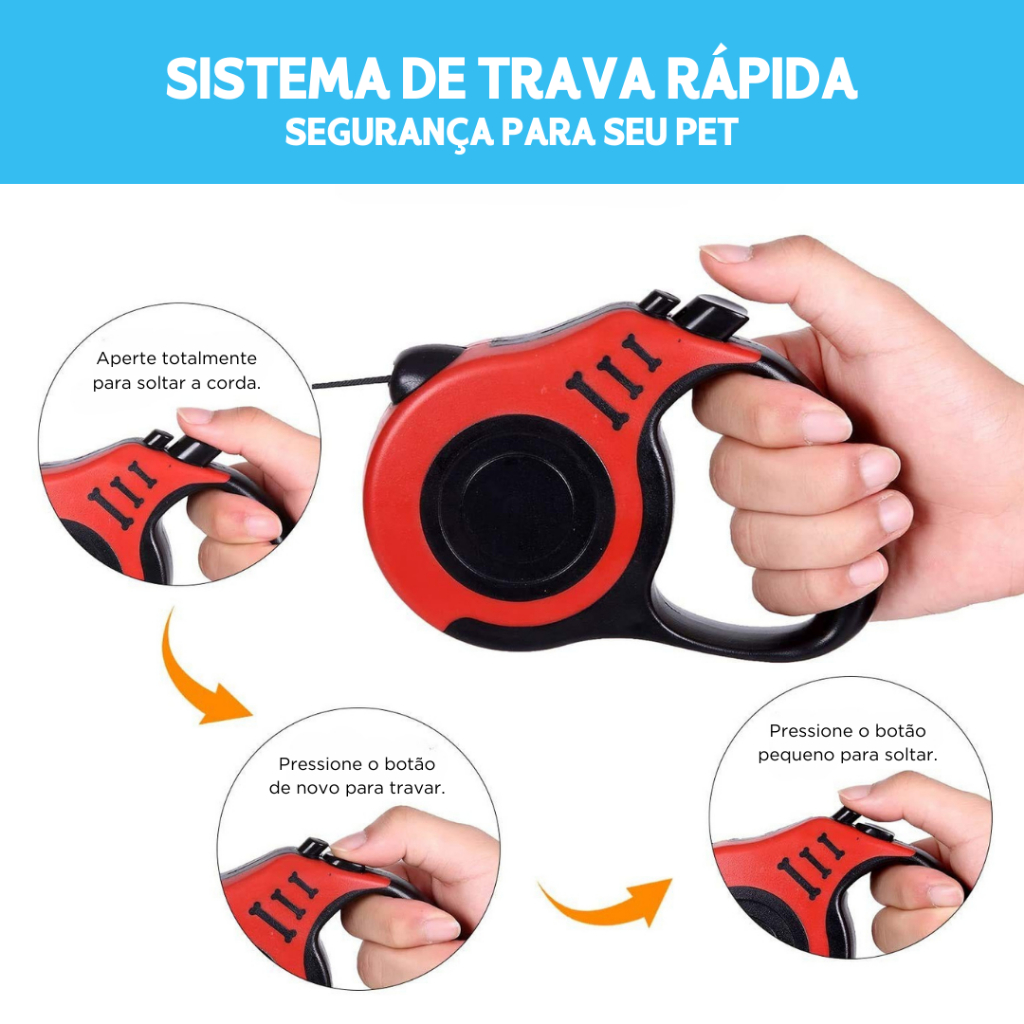 Coleira Retrátil Pet com Trava Segura | Liberdade e Controle em 5m Ideal para Passeios com Cães - NY