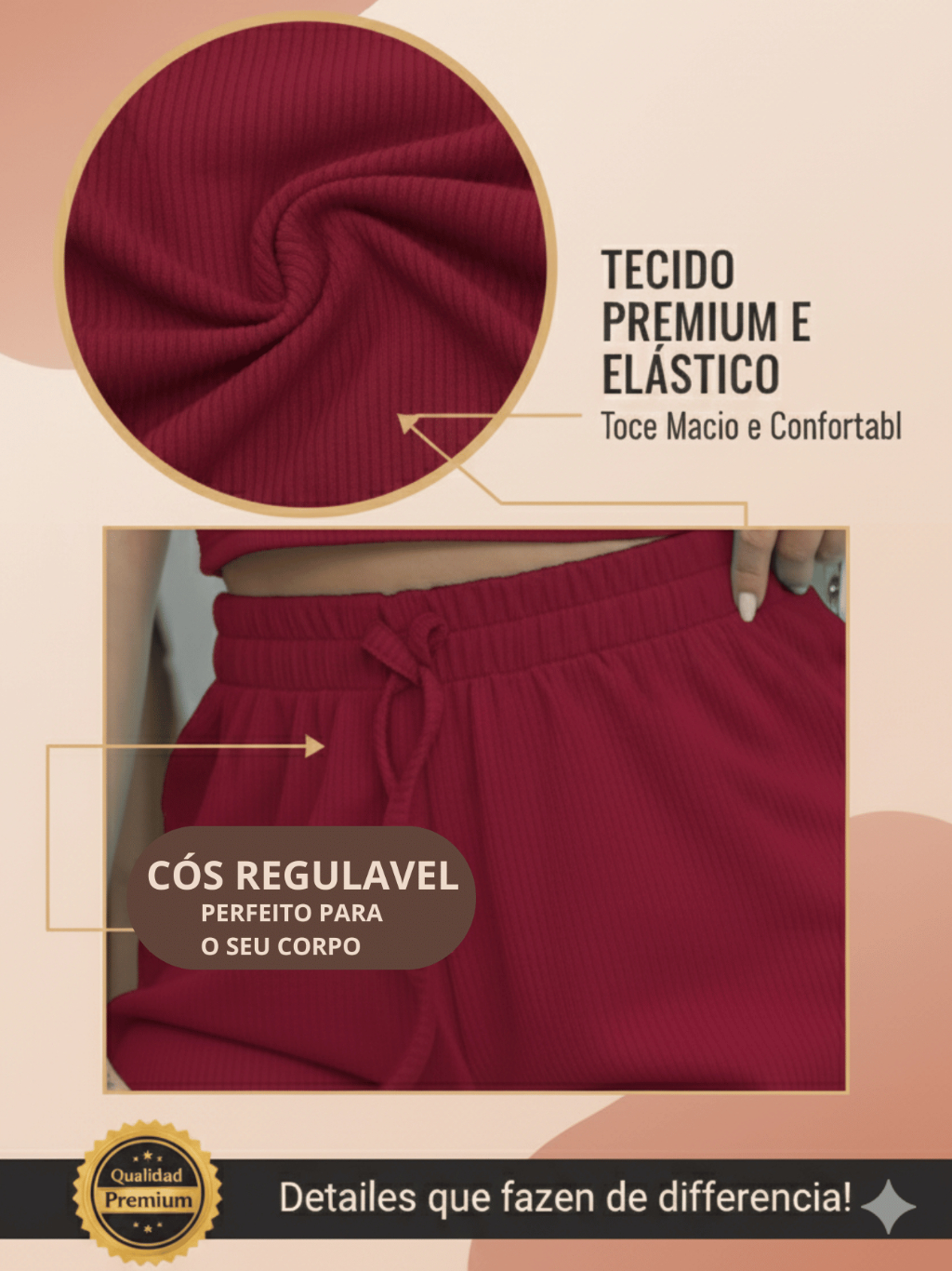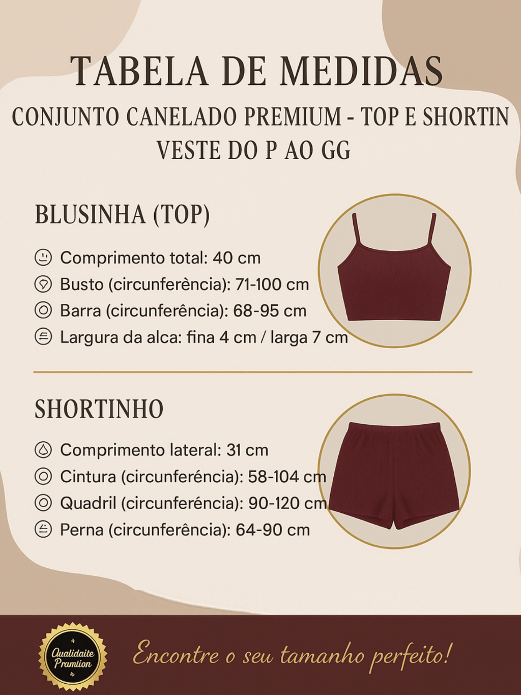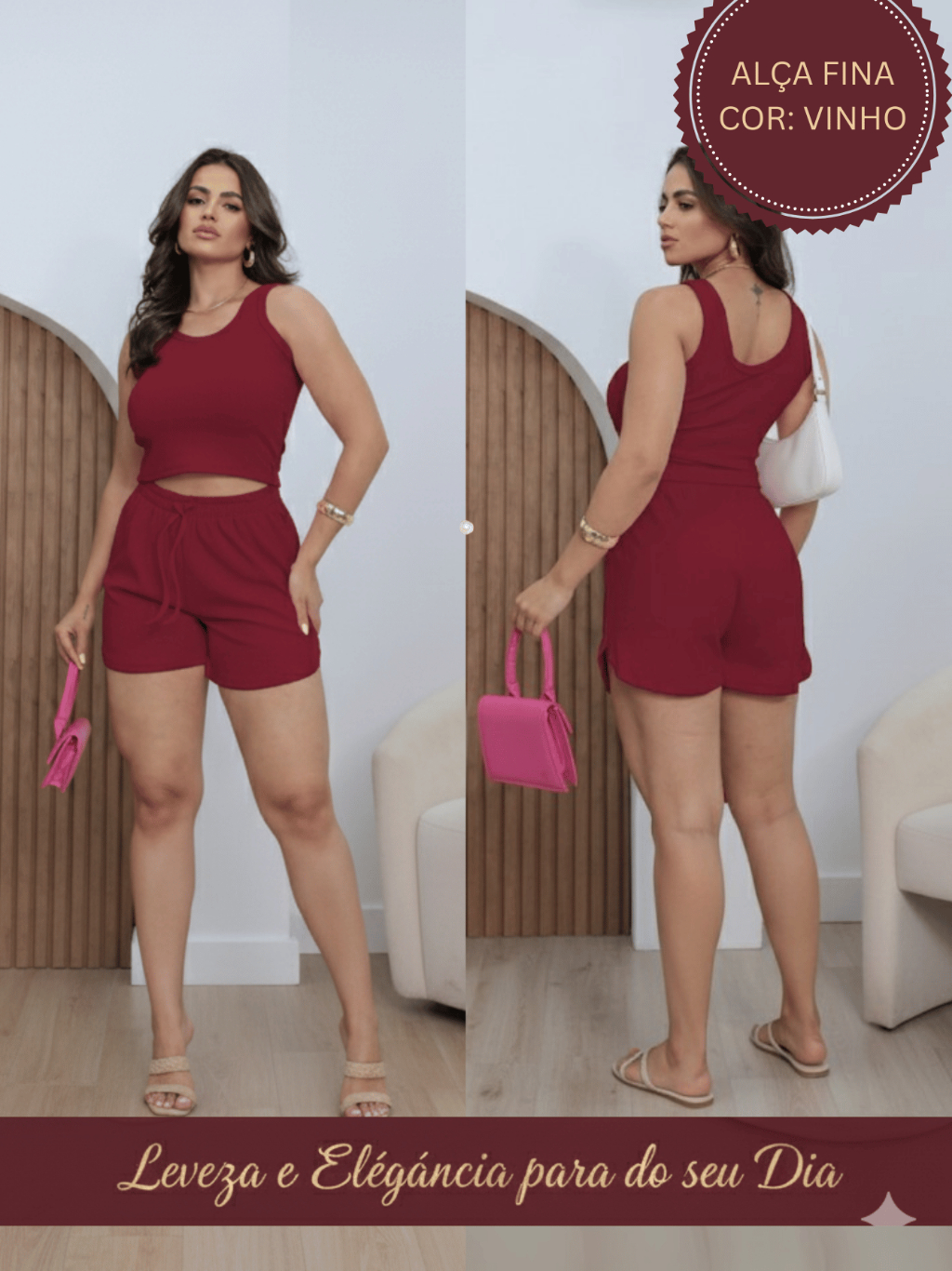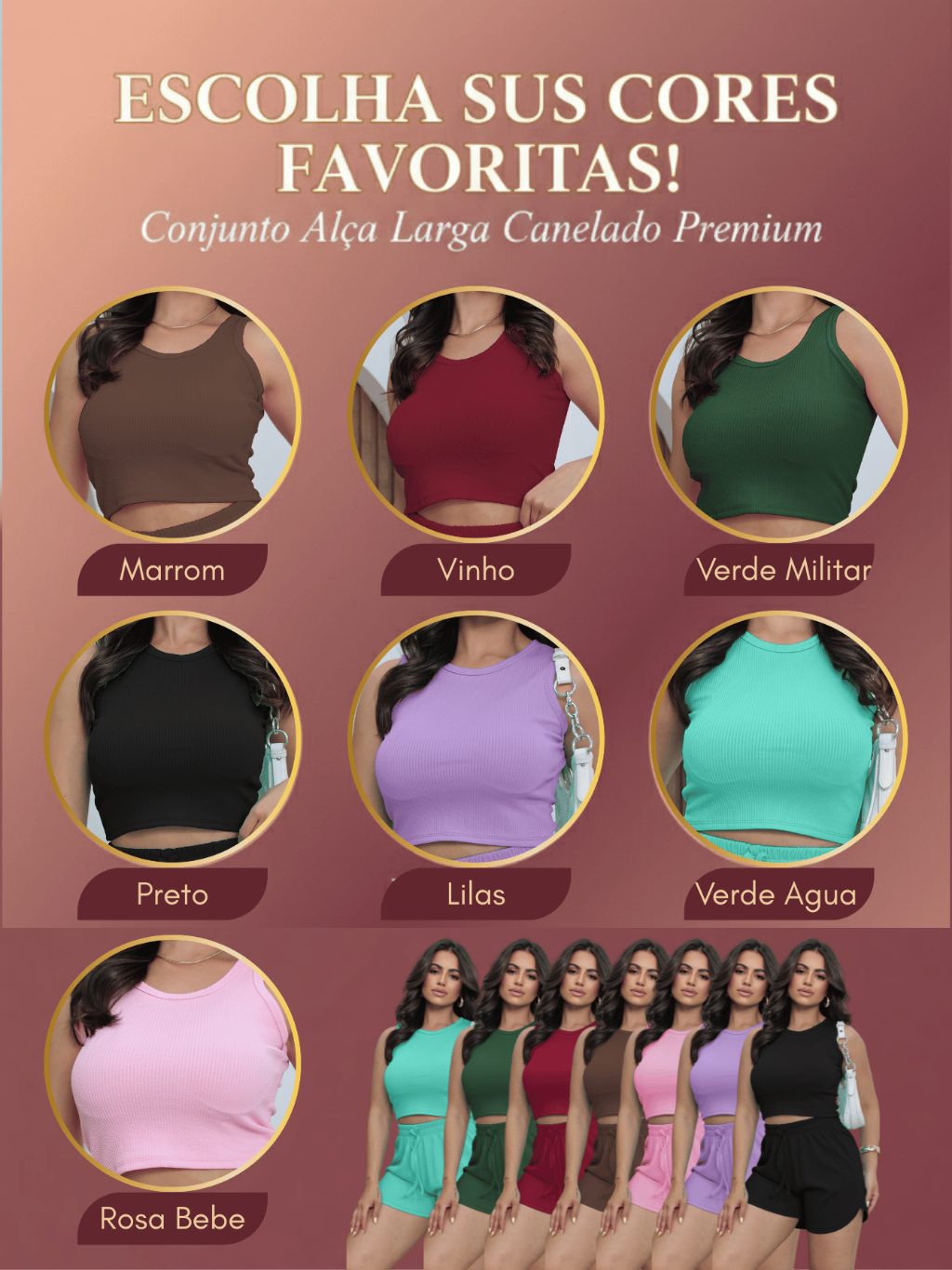 Kit Conjunto Feminino Canelado Premium: Alça Fina & Larga | Top Cropped + Short - Veste P ao GG