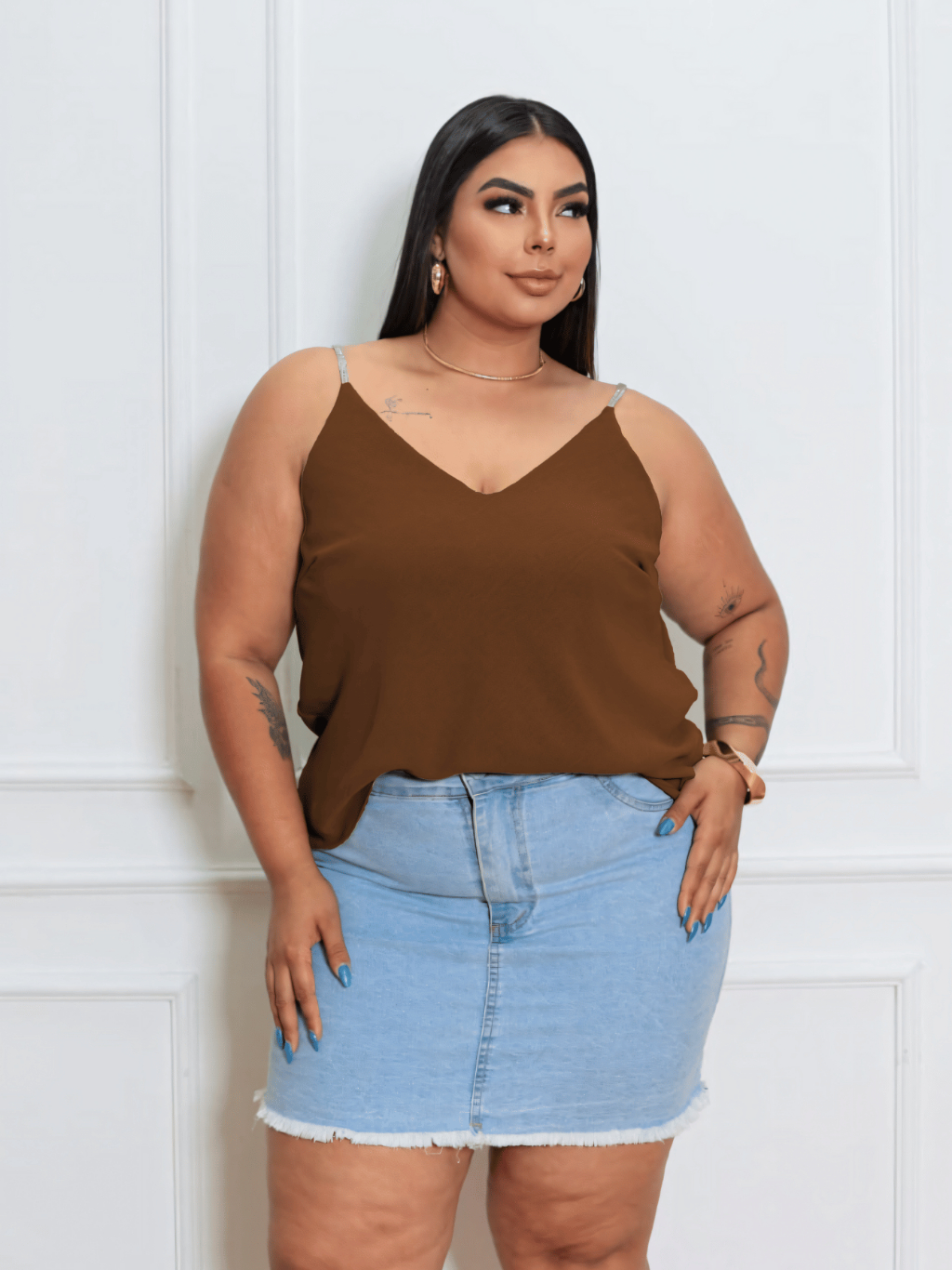 Blusa Regata Feminina Plus Size Com Alça Em Strass Festas Tendencia