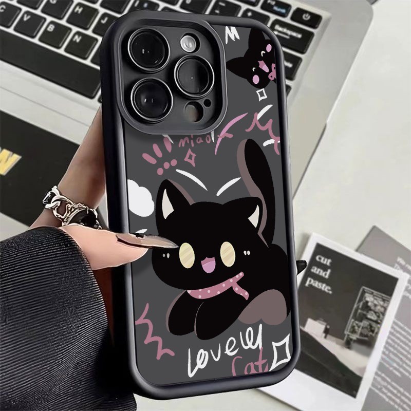 Capinha Capa de silicone Anti-impacto Adamantium Gatinho fofo para iPhone 11 12 13 14 15 16 pro max plus case