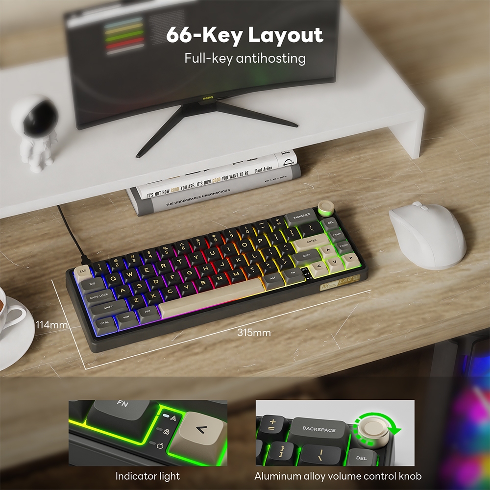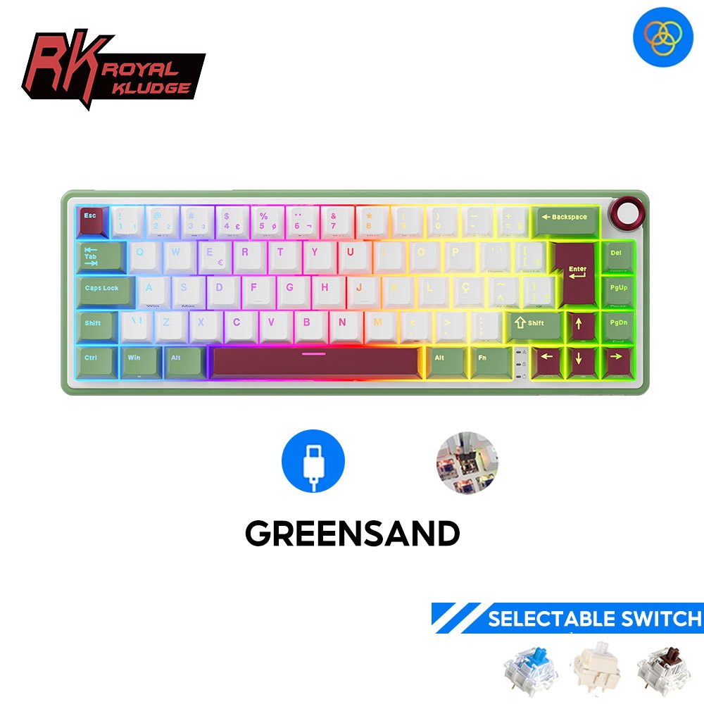 RK ROYAL KLUDGE R65 Português Greensand Gasket Teclado Mecânico Hot Swapple Com Fio