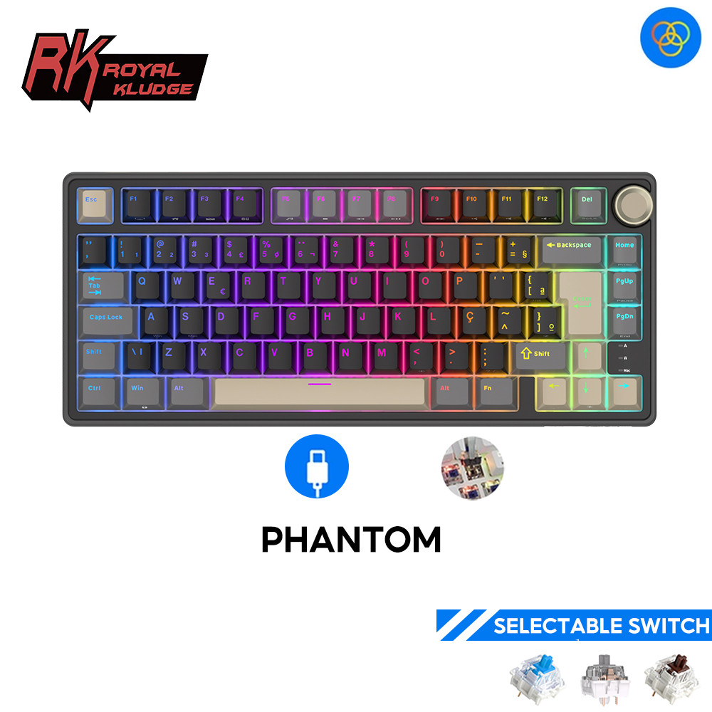 RK Royal Kludge RKR75 Blackberry Teclado Mecânico Com Fio Junta Portuguesa