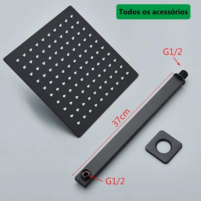 Chuveiro Ducha 30x30CM Preto 304 Quadrado Reto/Articulado Banheiro Piscina Area Externa