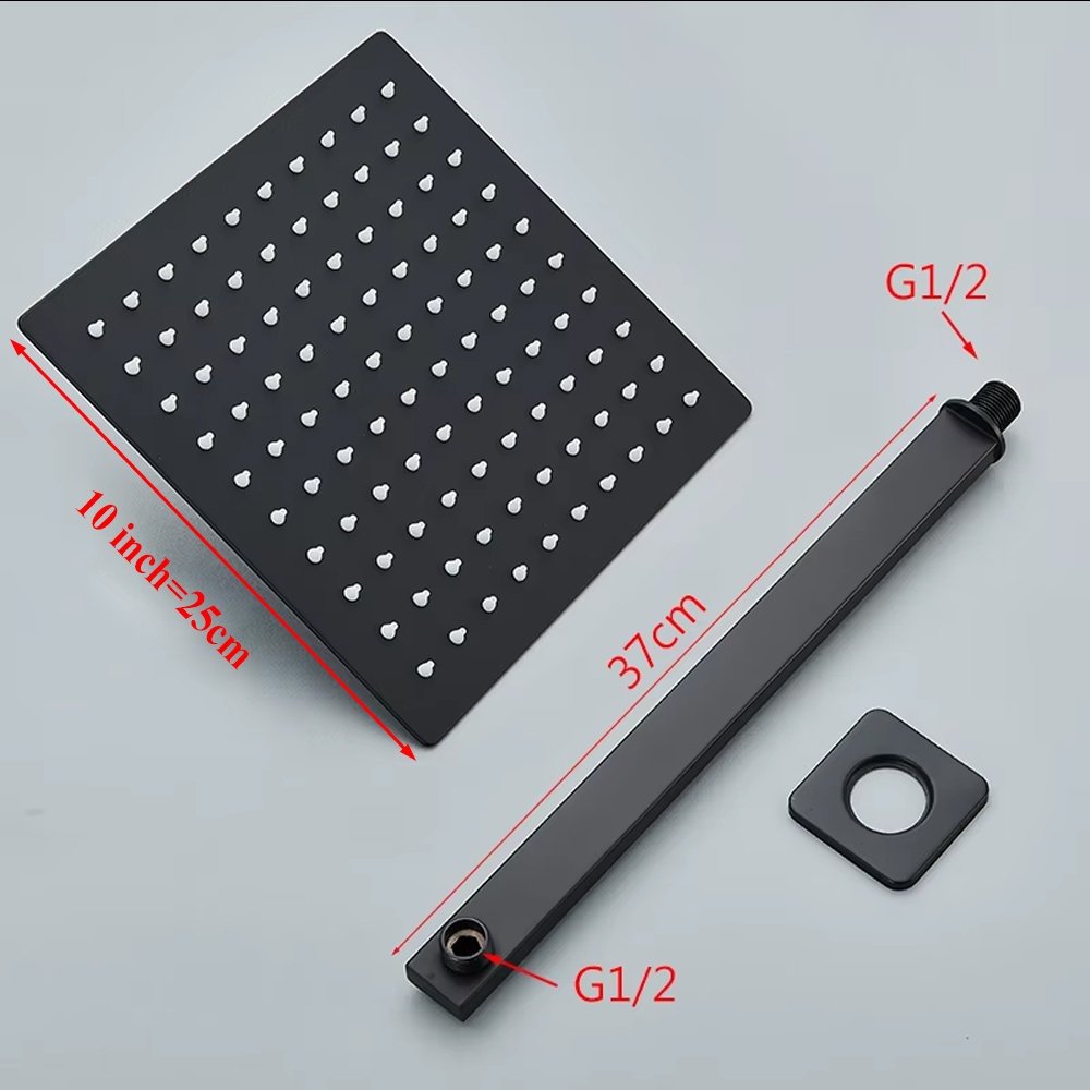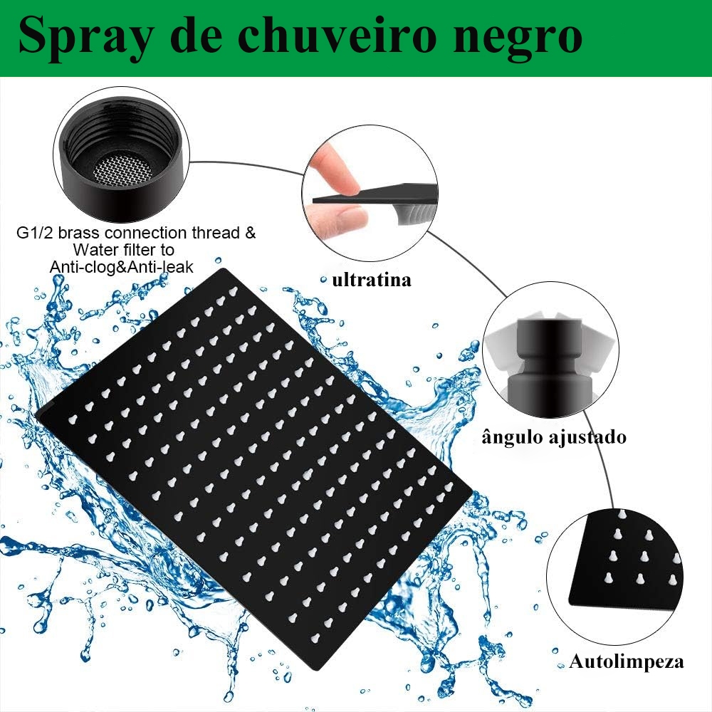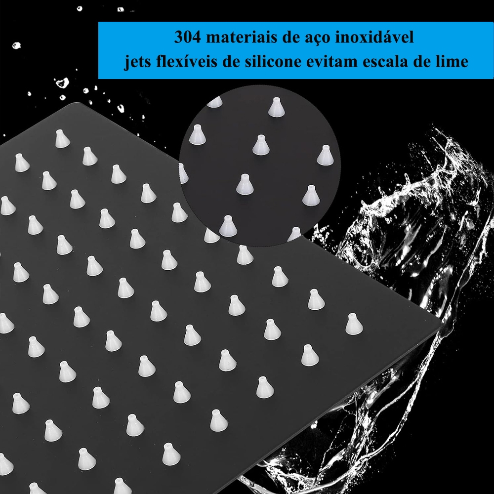 Chuveiro Ducha 30x30 Preto Inox 304 Quadrado Reto/Articulado Banheiro Piscina Area Externa