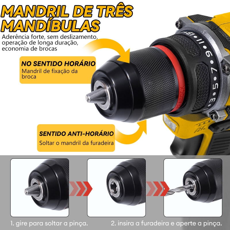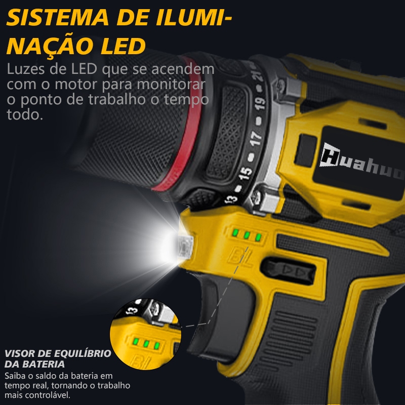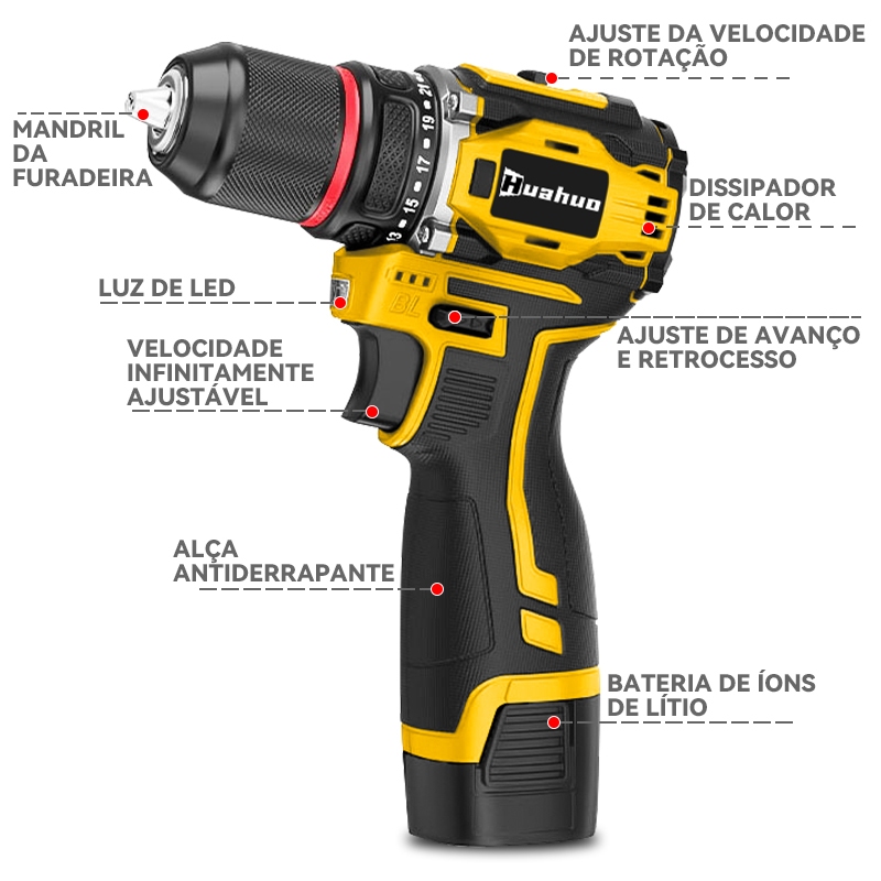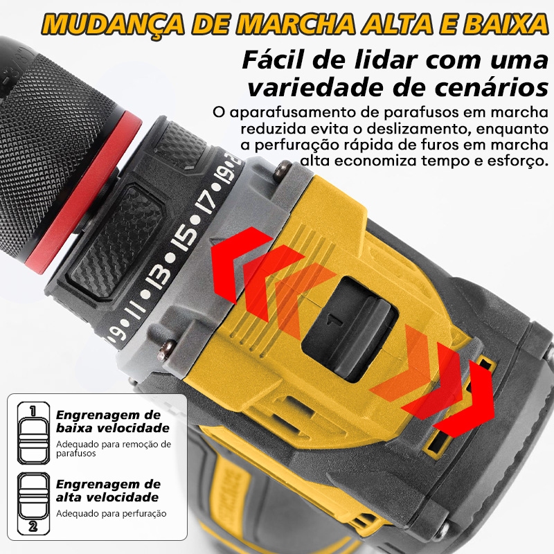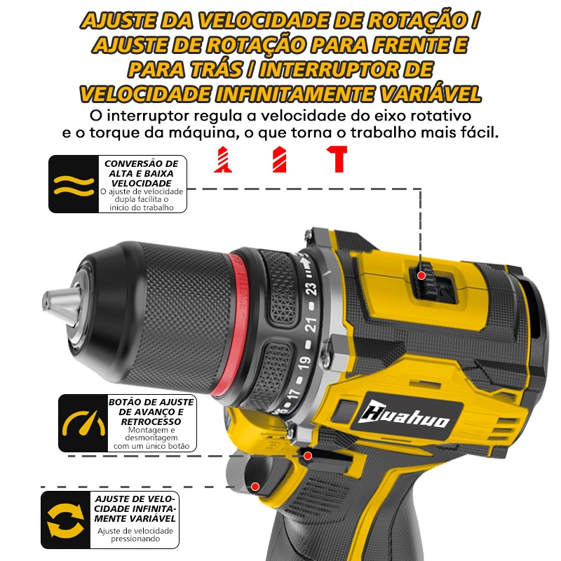 【110v/220v】Furadeira Parafusadeira 21v 2 Baterias em caixae de papelão e acessórios