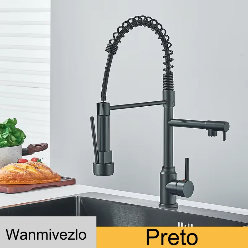 Torneira Para Pia De Cozinha Misturador De Água Quente E Fria De 2 Modos Com Bico Duplo