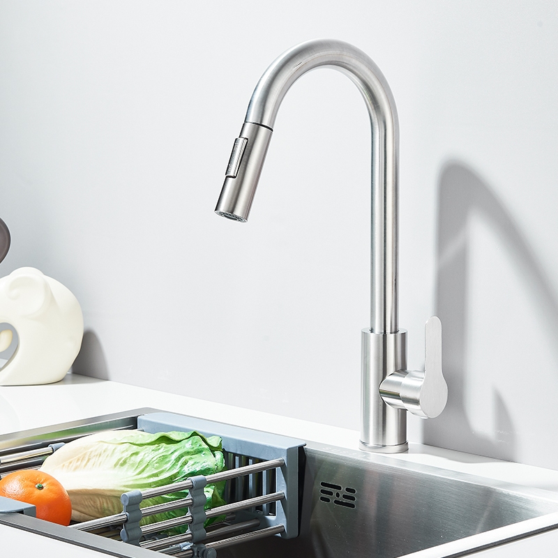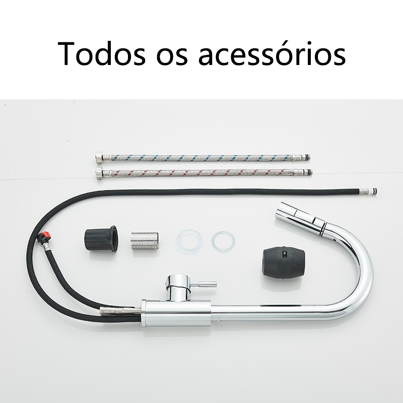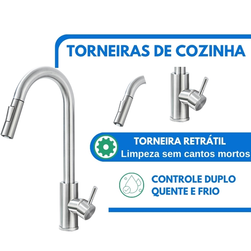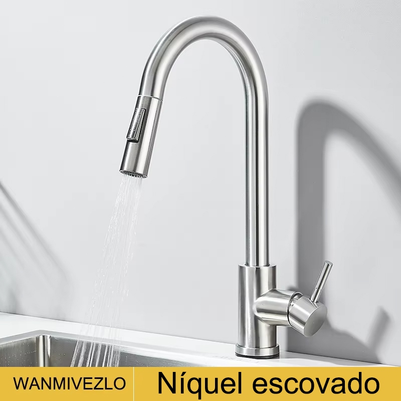 Torneira Banco De Cozinha Gourmet Misturador Extensível Cor Prata Escovado/Preto