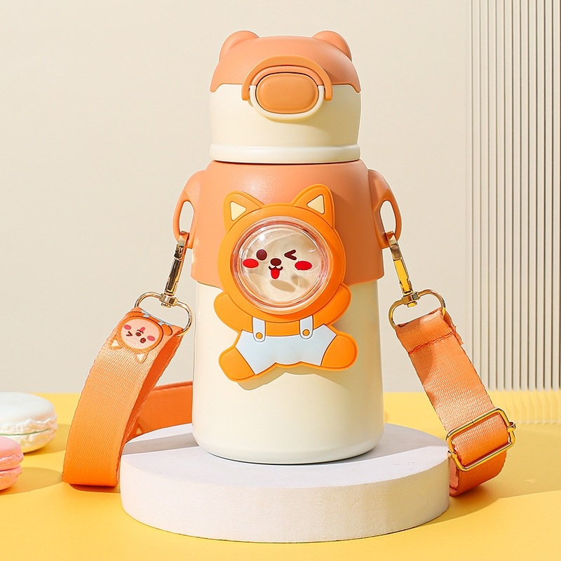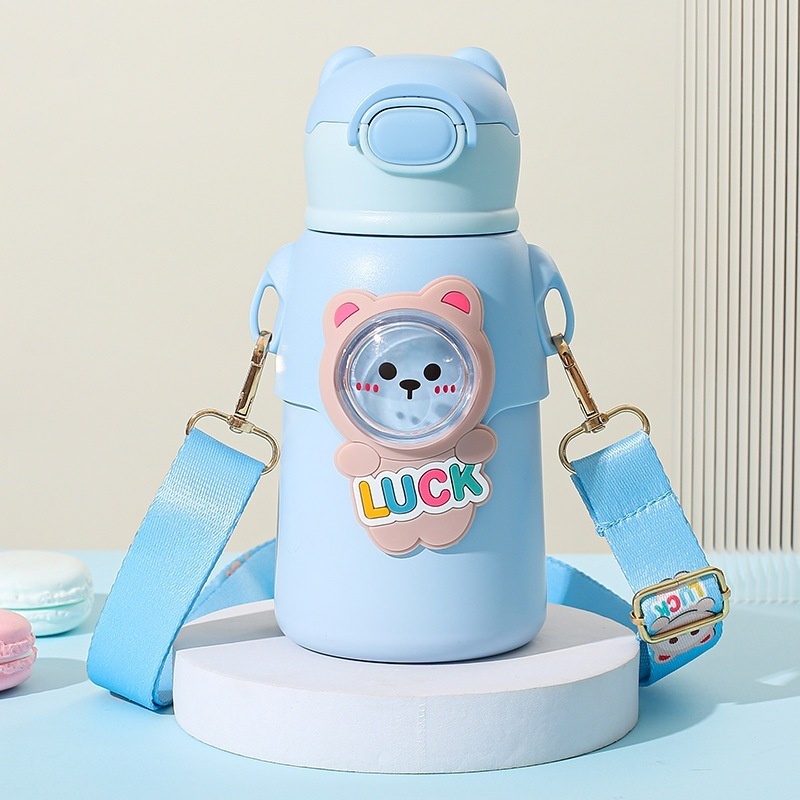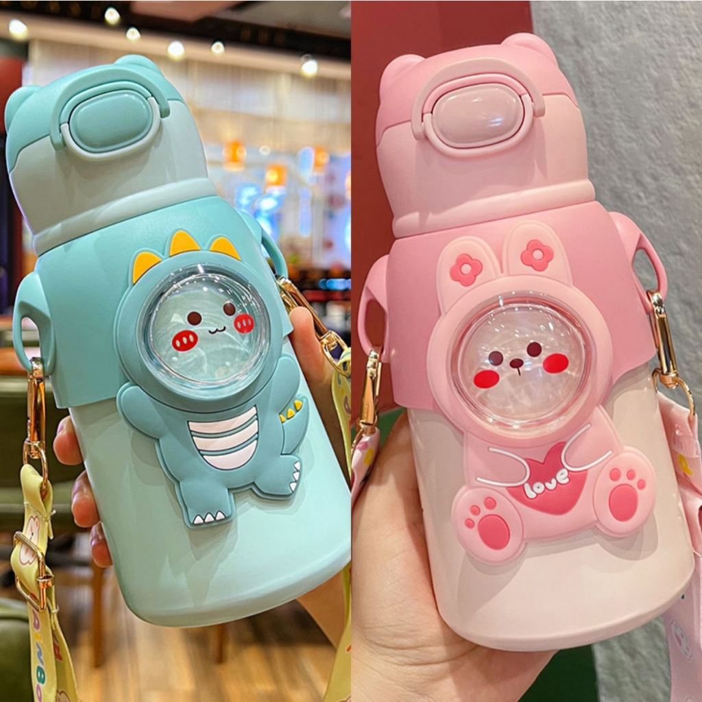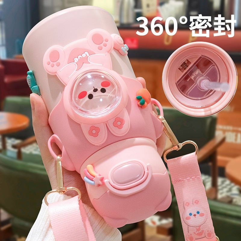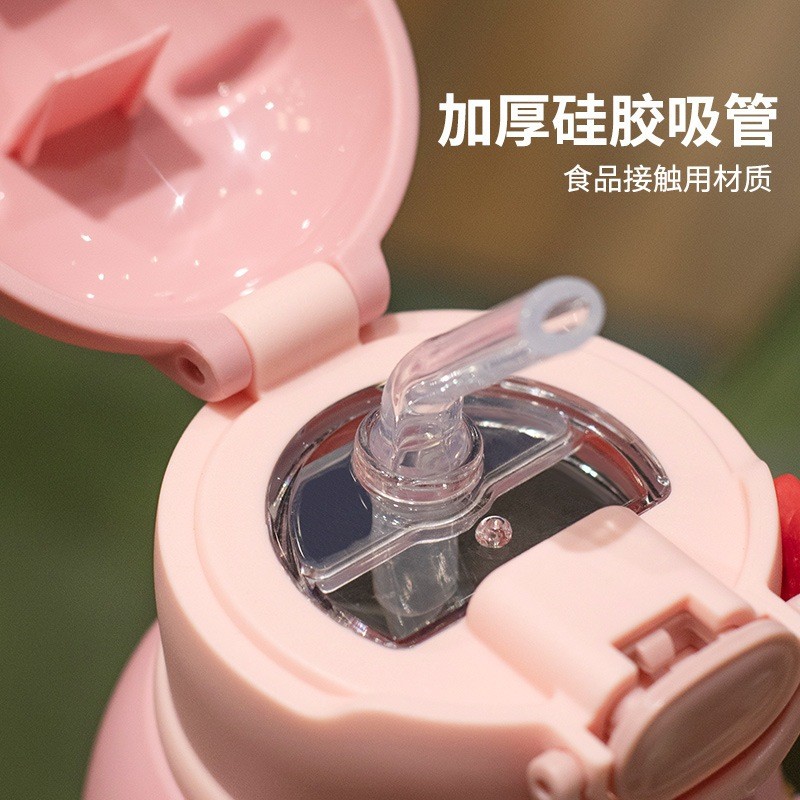 Garrafa térmica infantil com canudo e alça em aço inox para crianças--1330