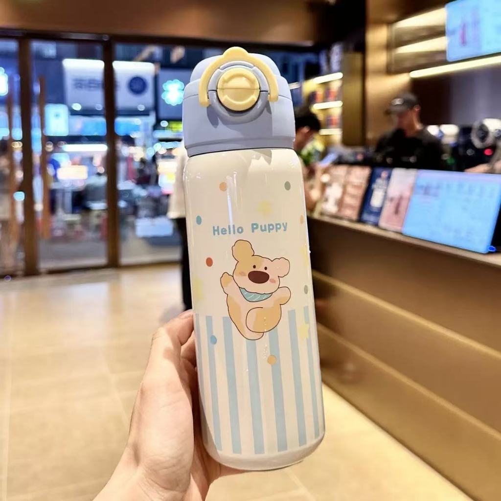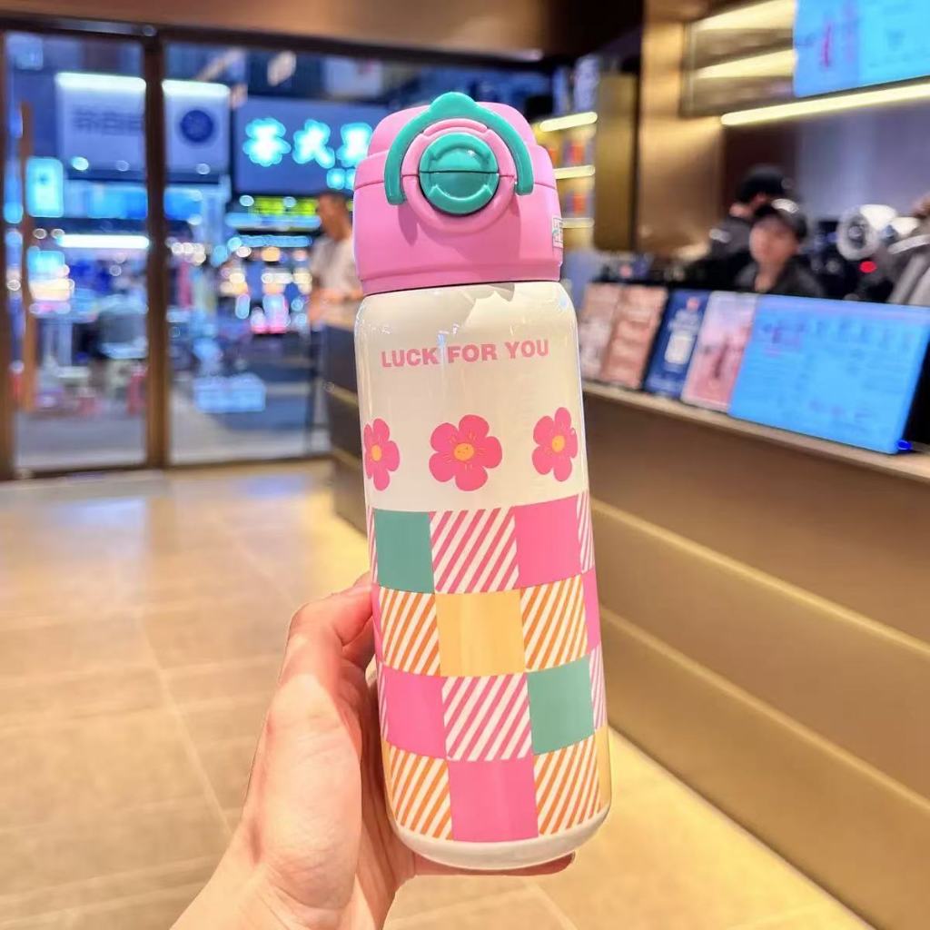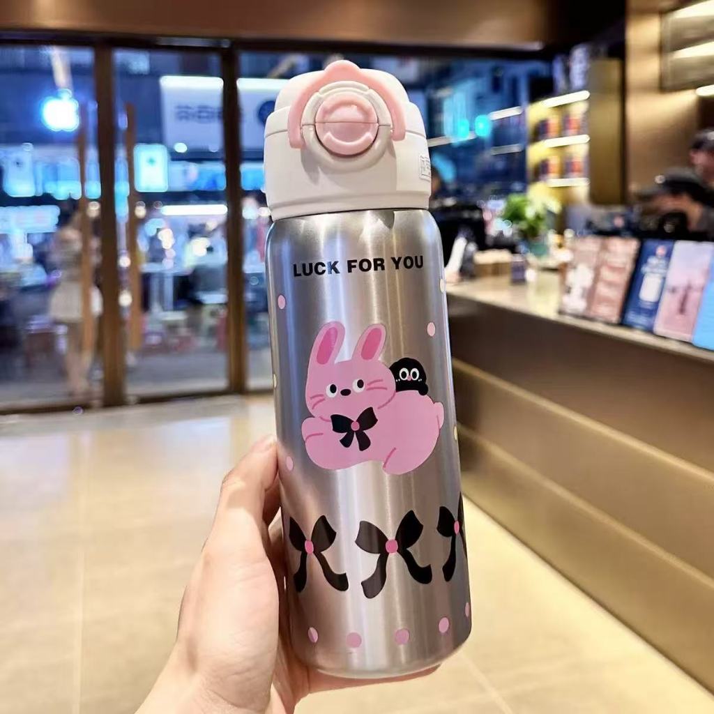 Garrafa térmica infantil com canudo e alça em aço inox para crianças--1330