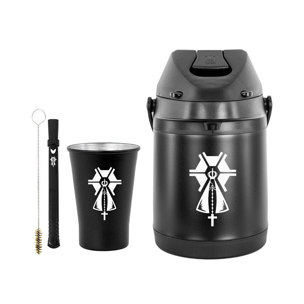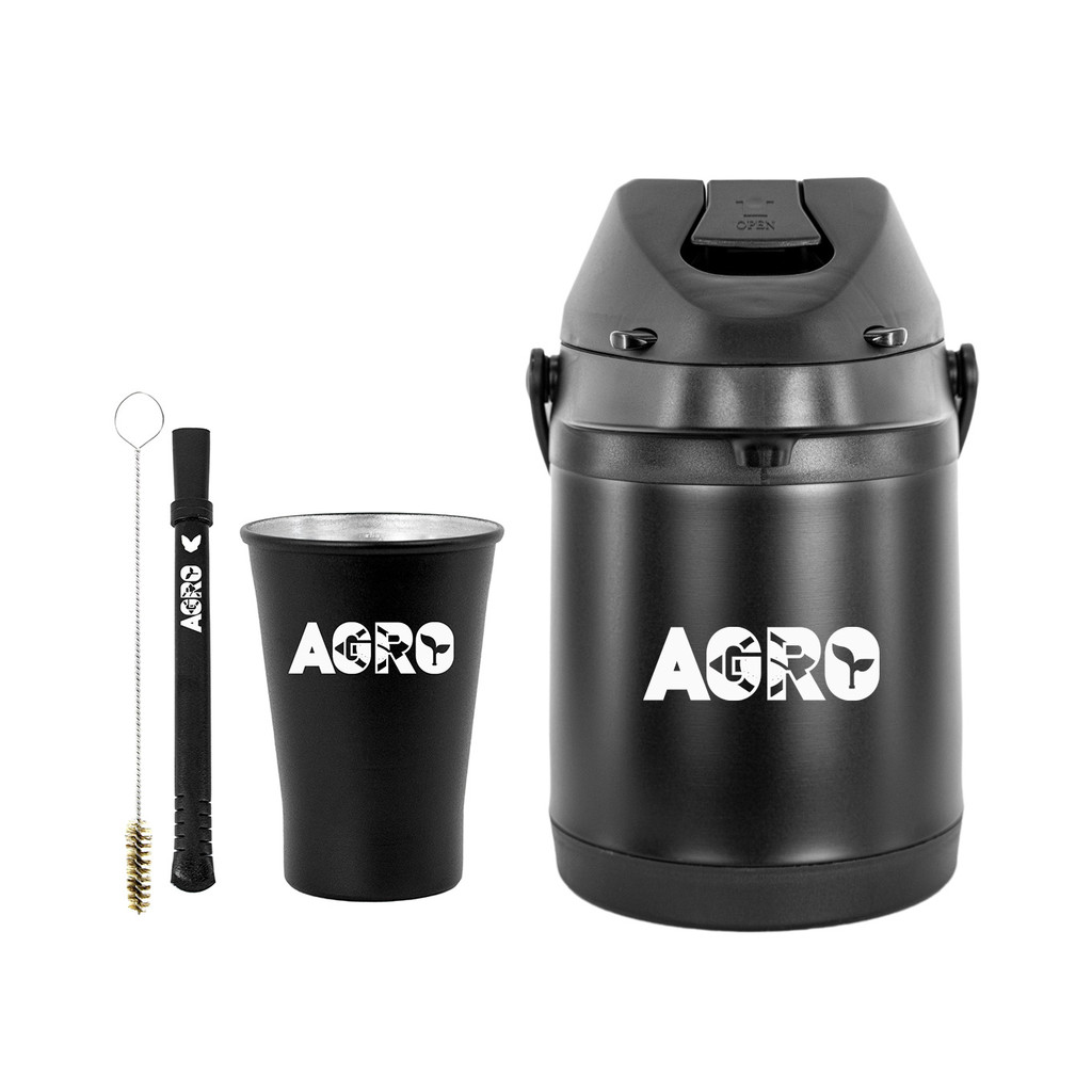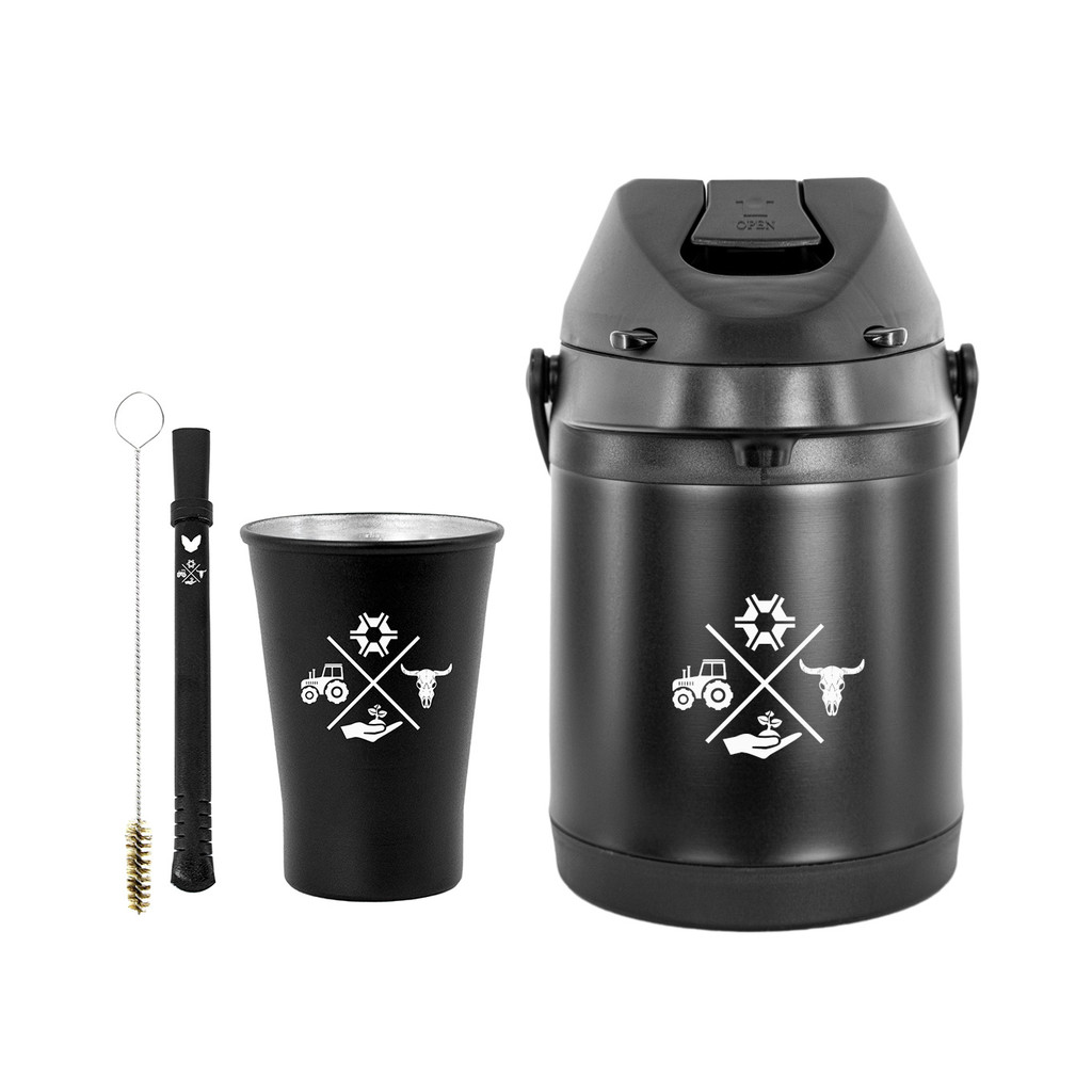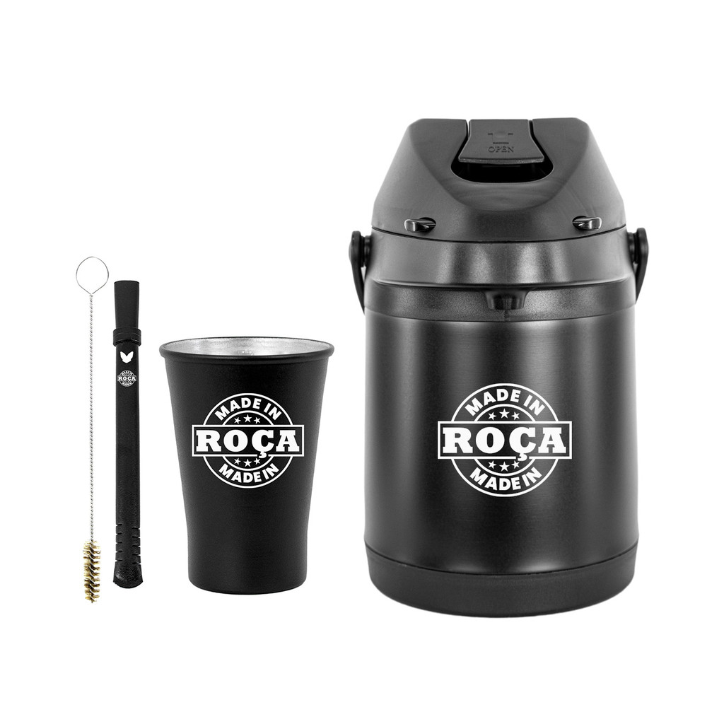 Kit Tereré Garrafa Térmica Preta 2.5l Bomba Chacal Copo Alumínio Preto 280ml