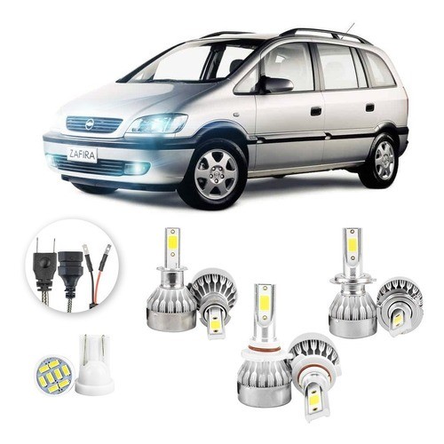 Lâmpadas Ultra Led Chevrolet Zafira 20000lm Alto Baixo e Milha + Pingo Led
