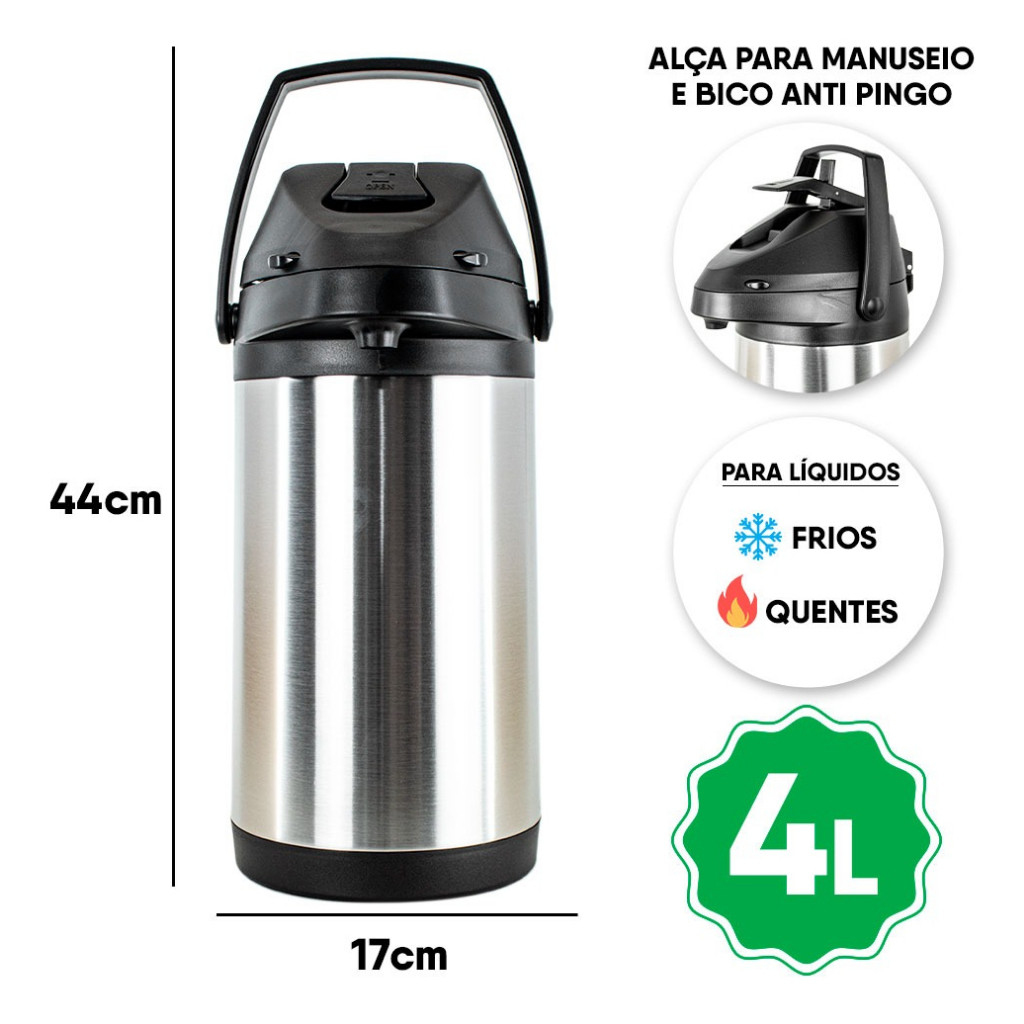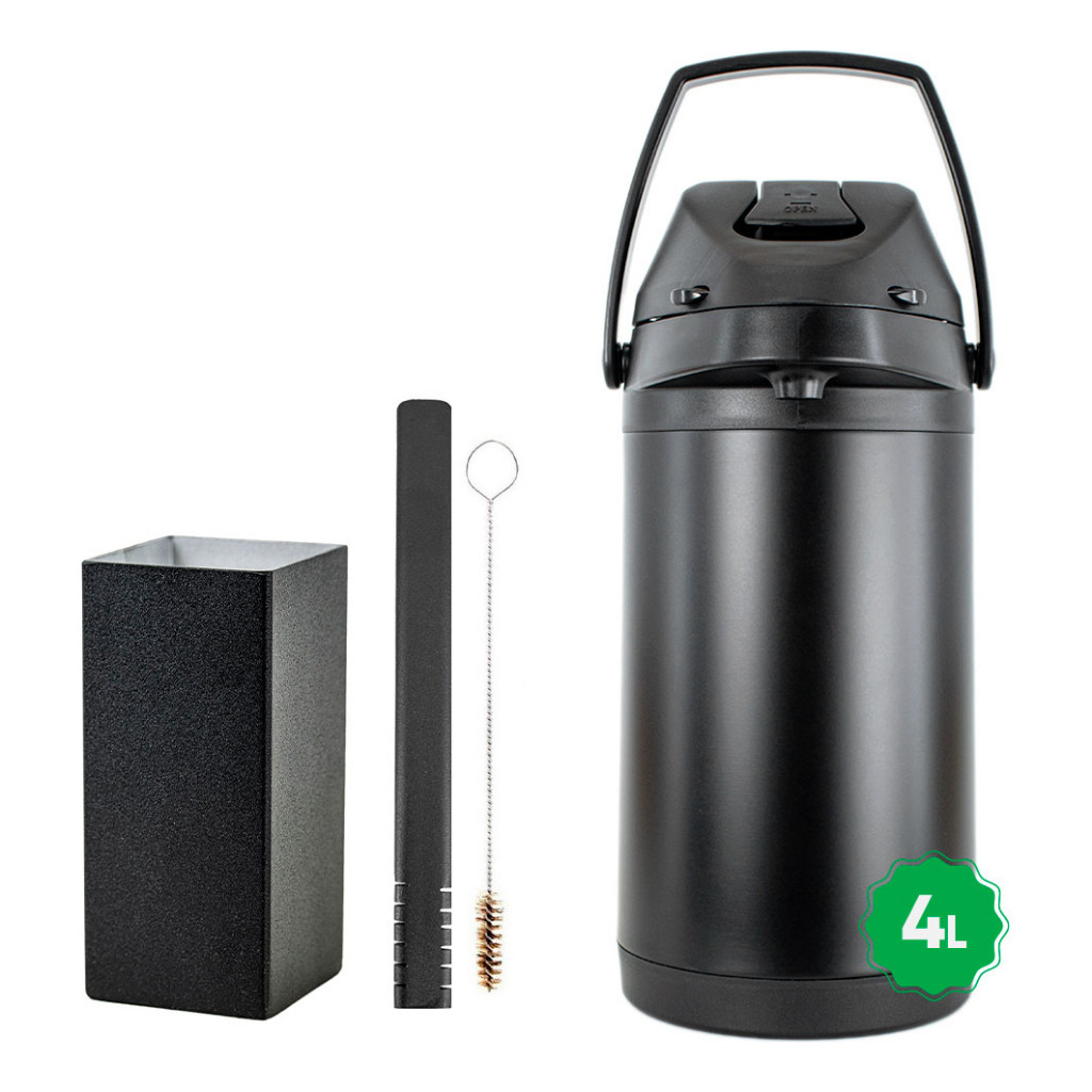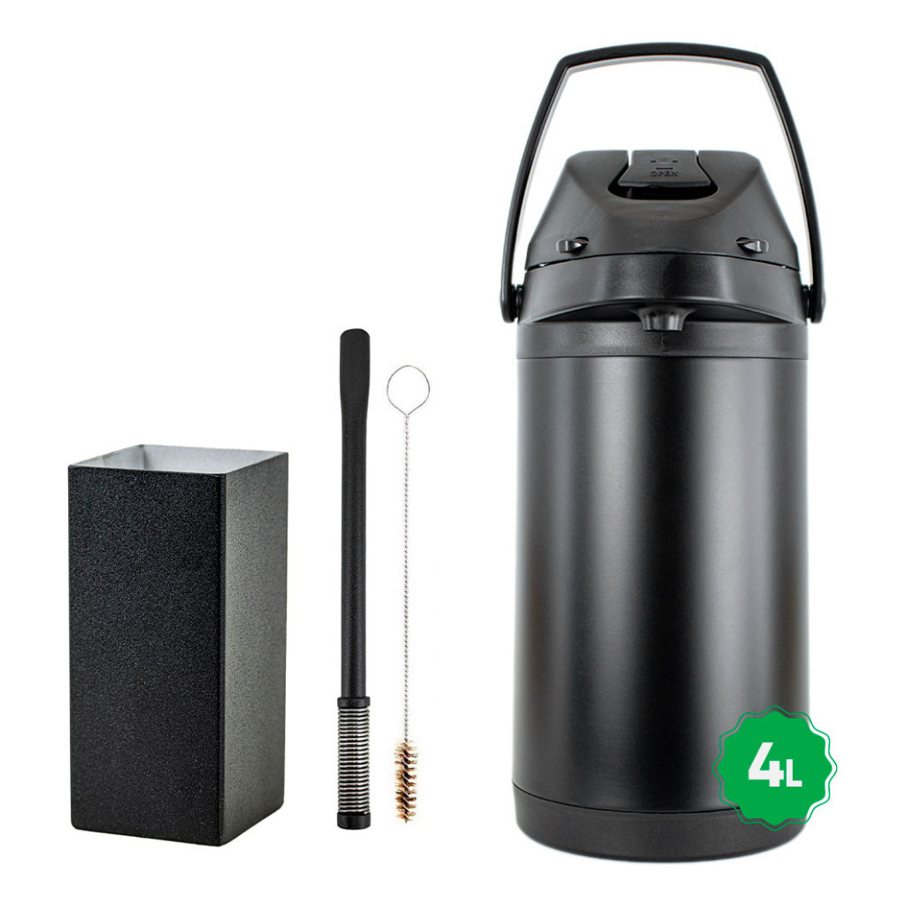 Kit Tereré Copo Bomba Preto Garrafa Térmica 4l Black Inox