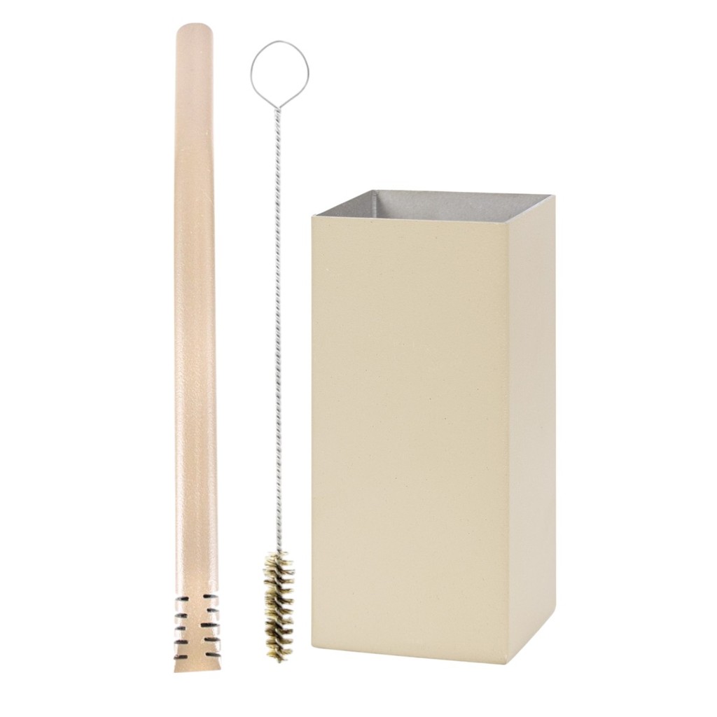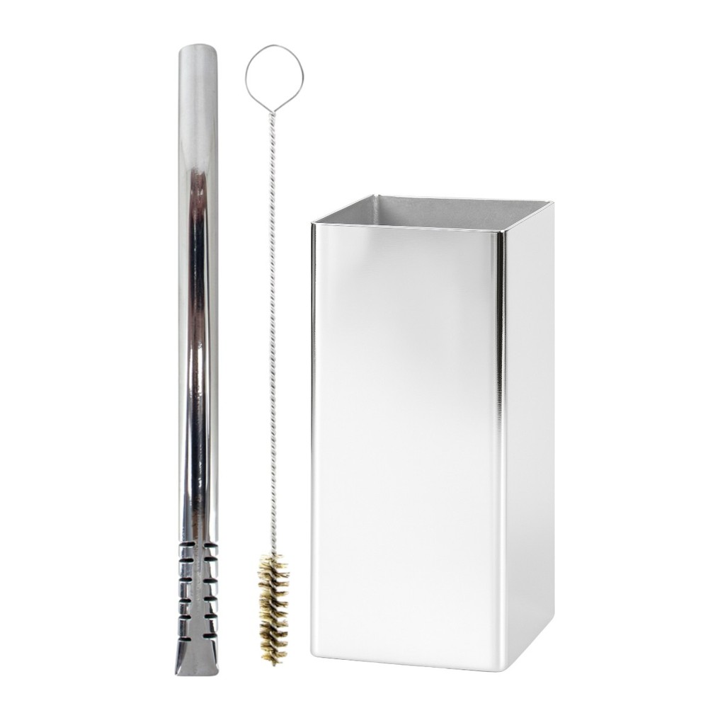 Kit Terere Inox Copo Cuia Quadrado Bomba Tereré Inox Filete + Escova de Limpeza Cores