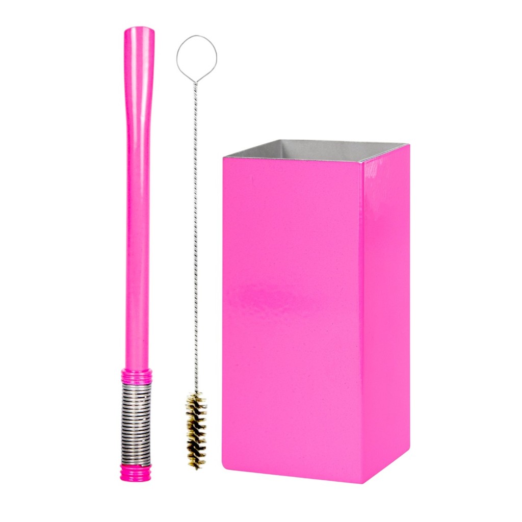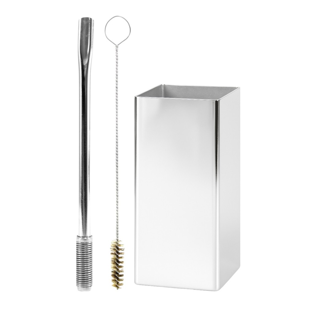 Kit Terere Inox Copo Quadrado Cuia Bomba Bojo Mola + Escova de Limpeza Cores
