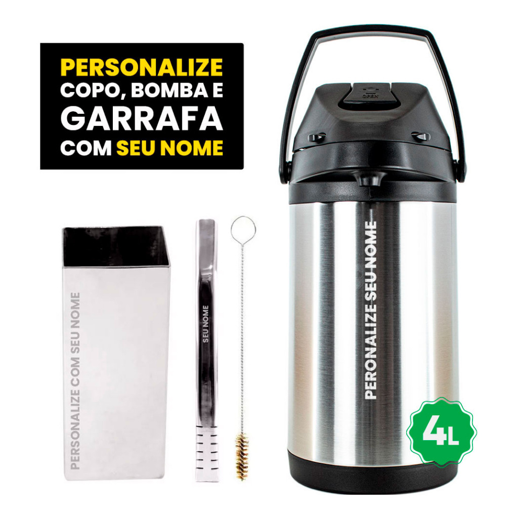 Kit Tereré Copo Bomba Garrafa Termica 4l Inox - Seu Nome