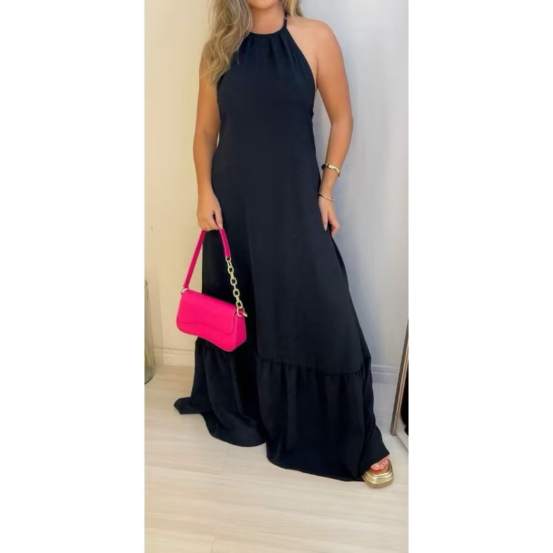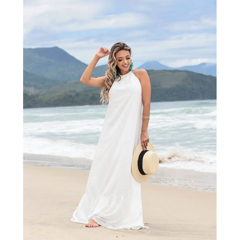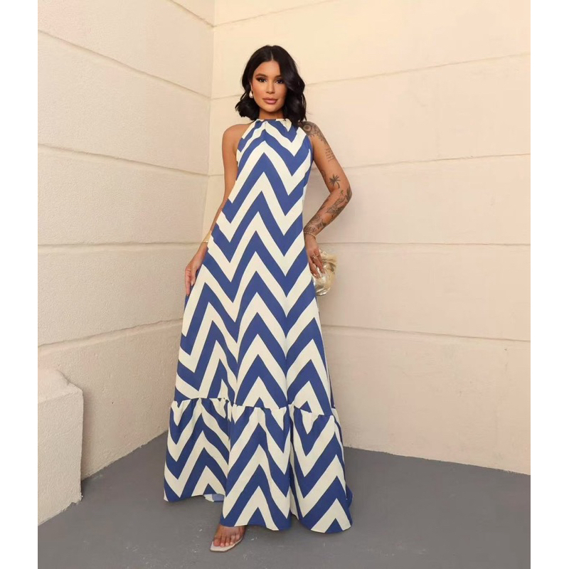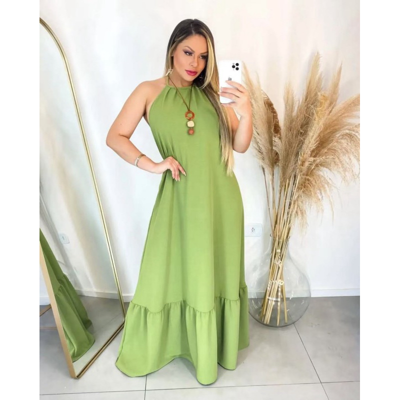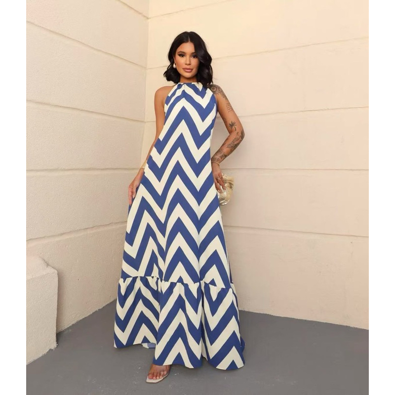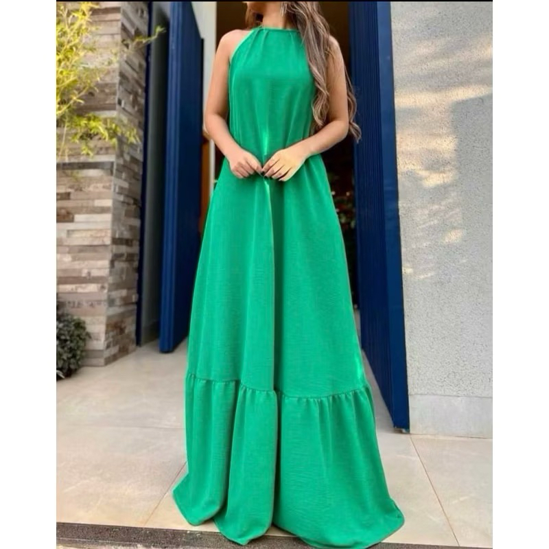 Vestido Longo Frente Única Liso / Estampado Com Bojo H-6