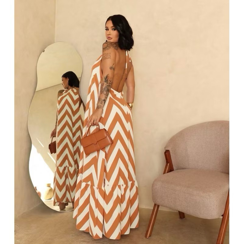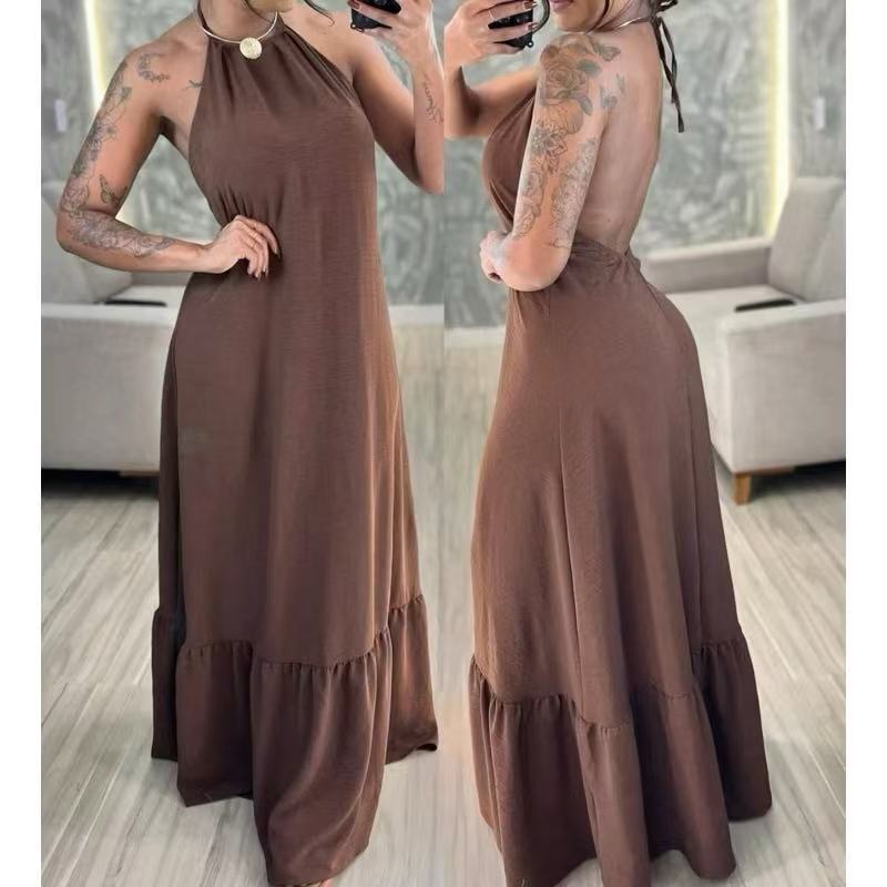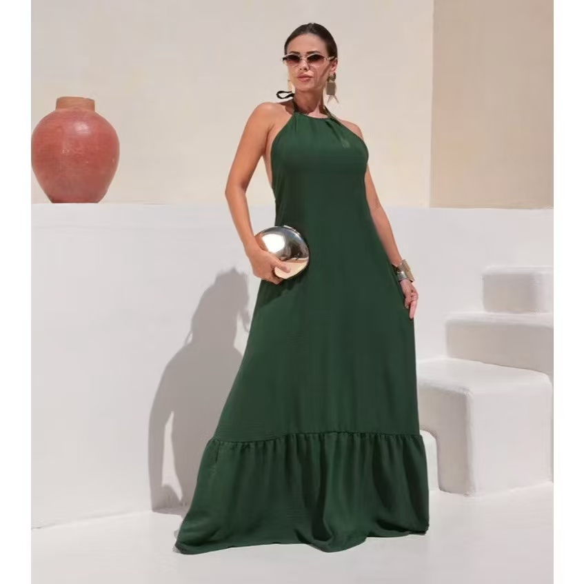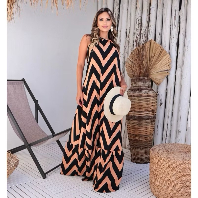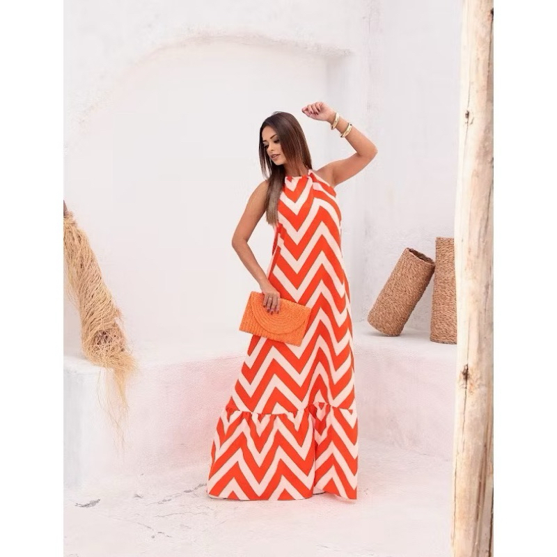 Vestido Longo Frente Única Liso / Estampado Com Bojo H-6