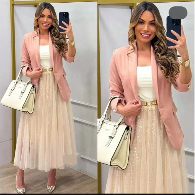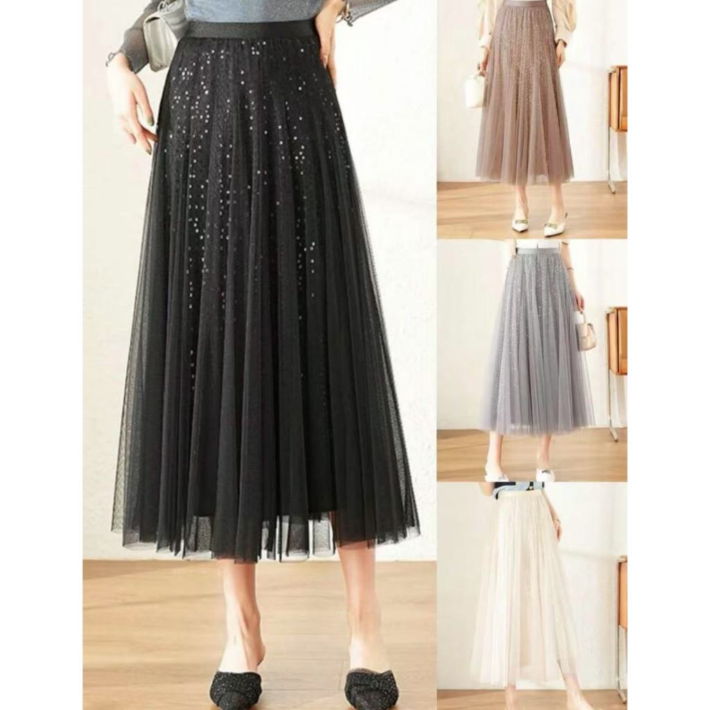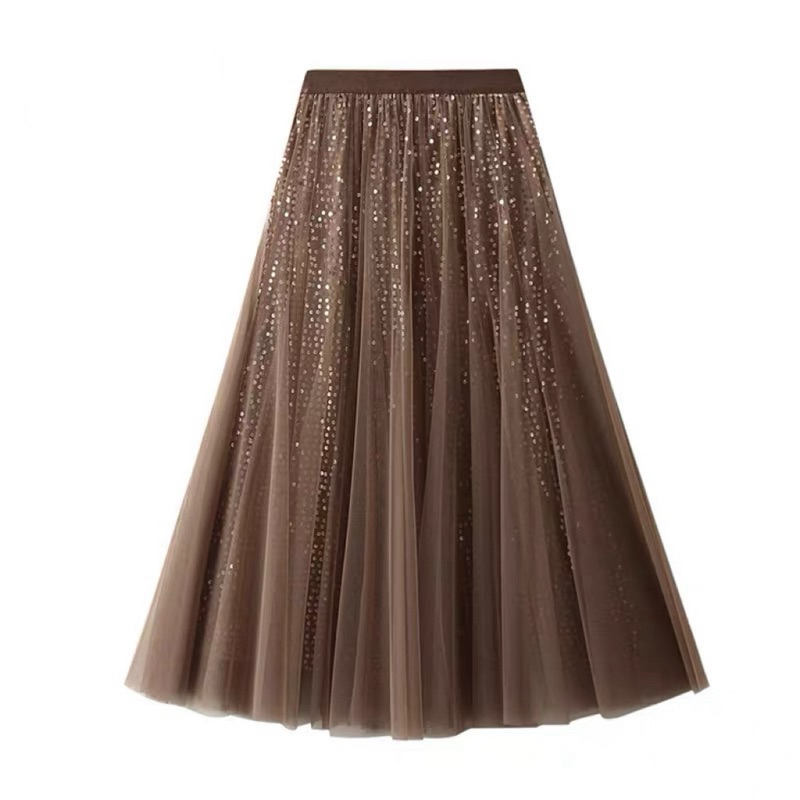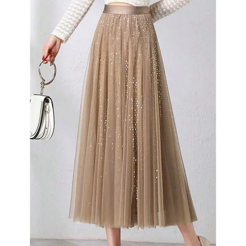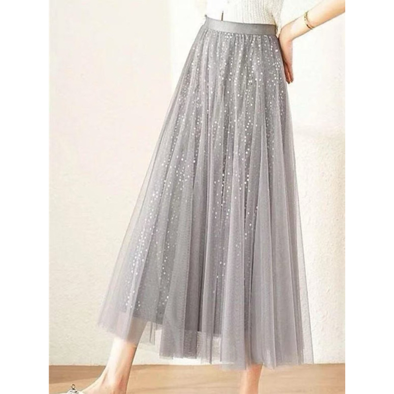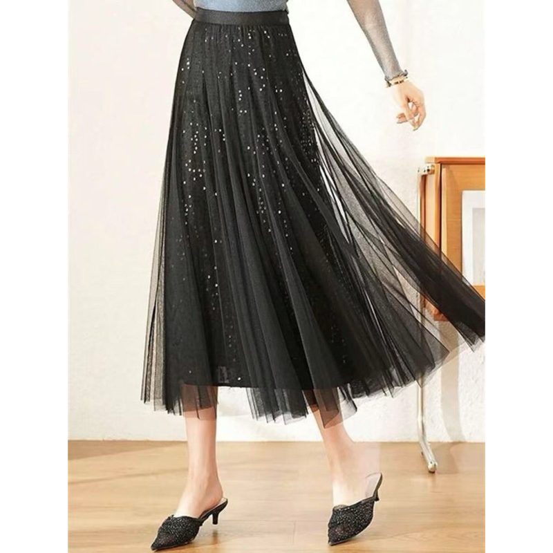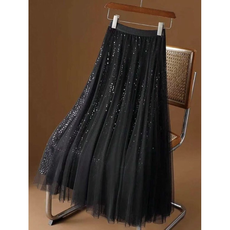 Saia de malha de lantejoulas feminina verão nova cintura alta hip cobrindo comprimento médio 82