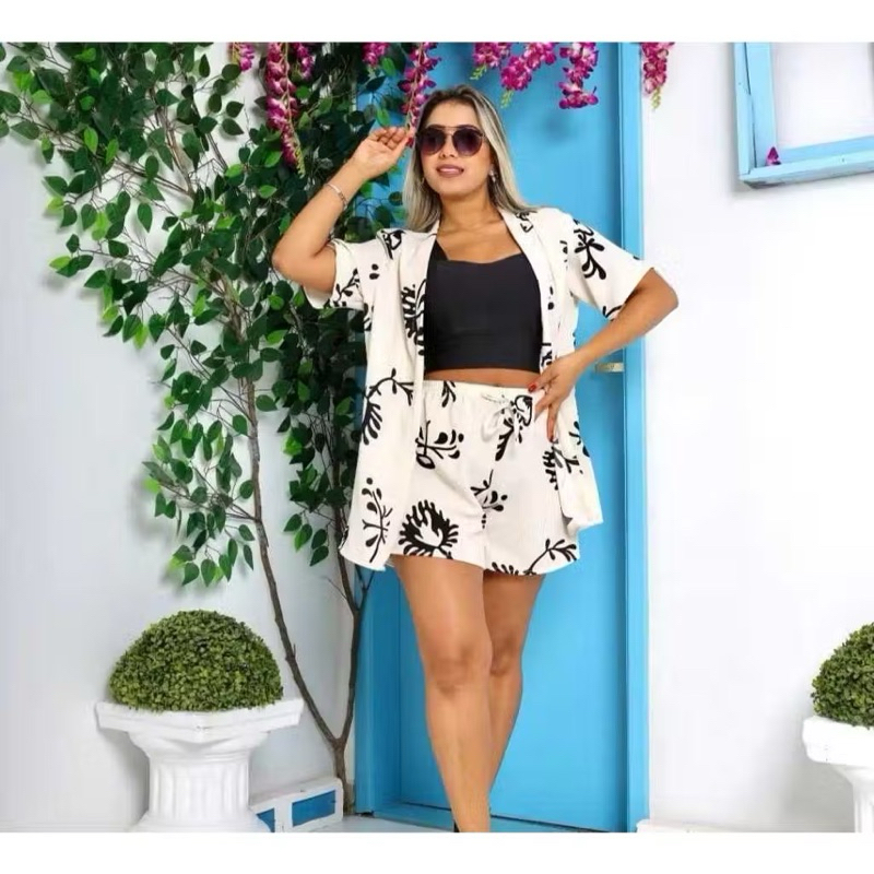 Conjunto Feminino Estampado Tropi c/ Chamise & Short J-1