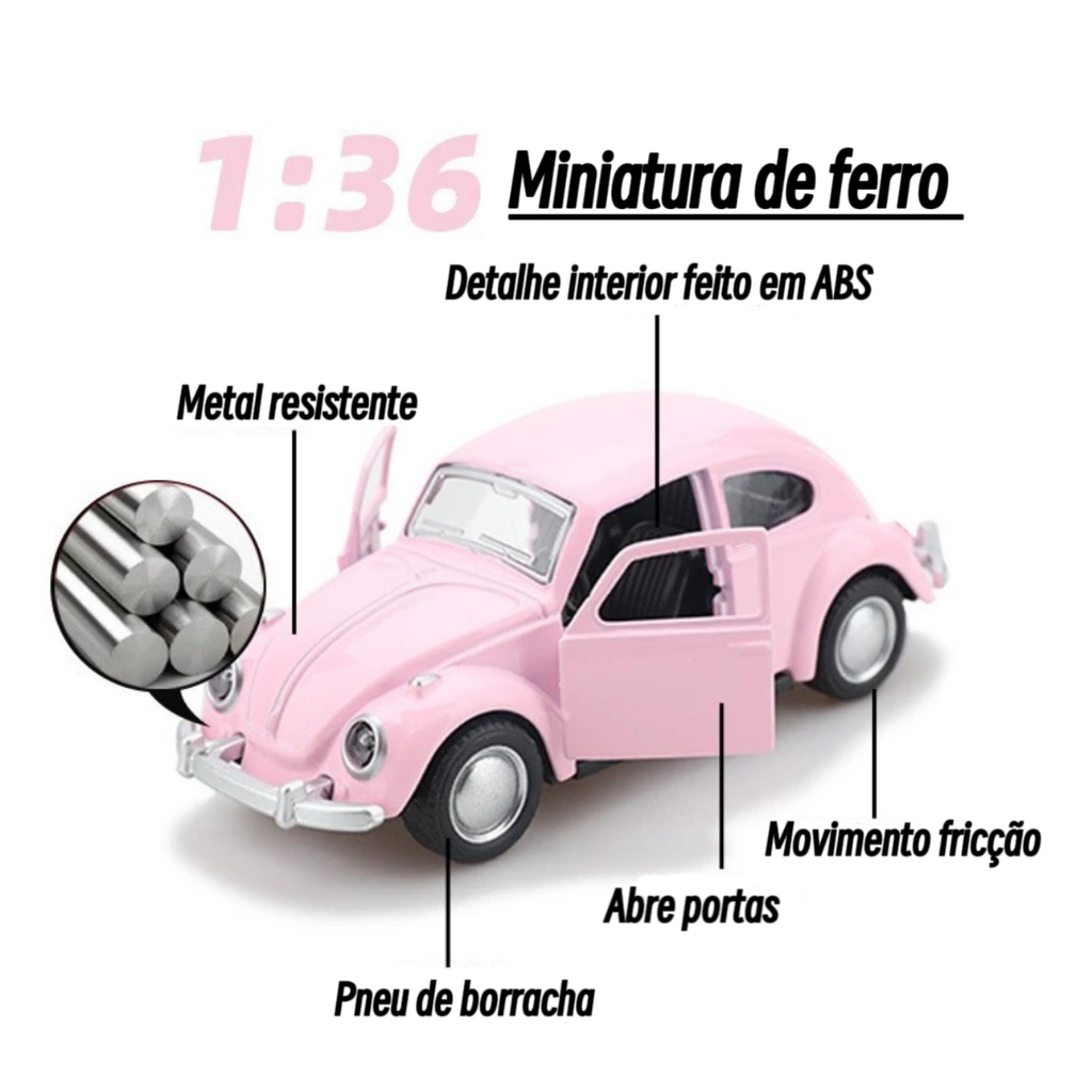 Miniatura Carrinho De Ferro Fusca Clássico 1/32 a Fricção Abre Porta Fusquinha Coleção Brinquedo Die Cast Volkswagen