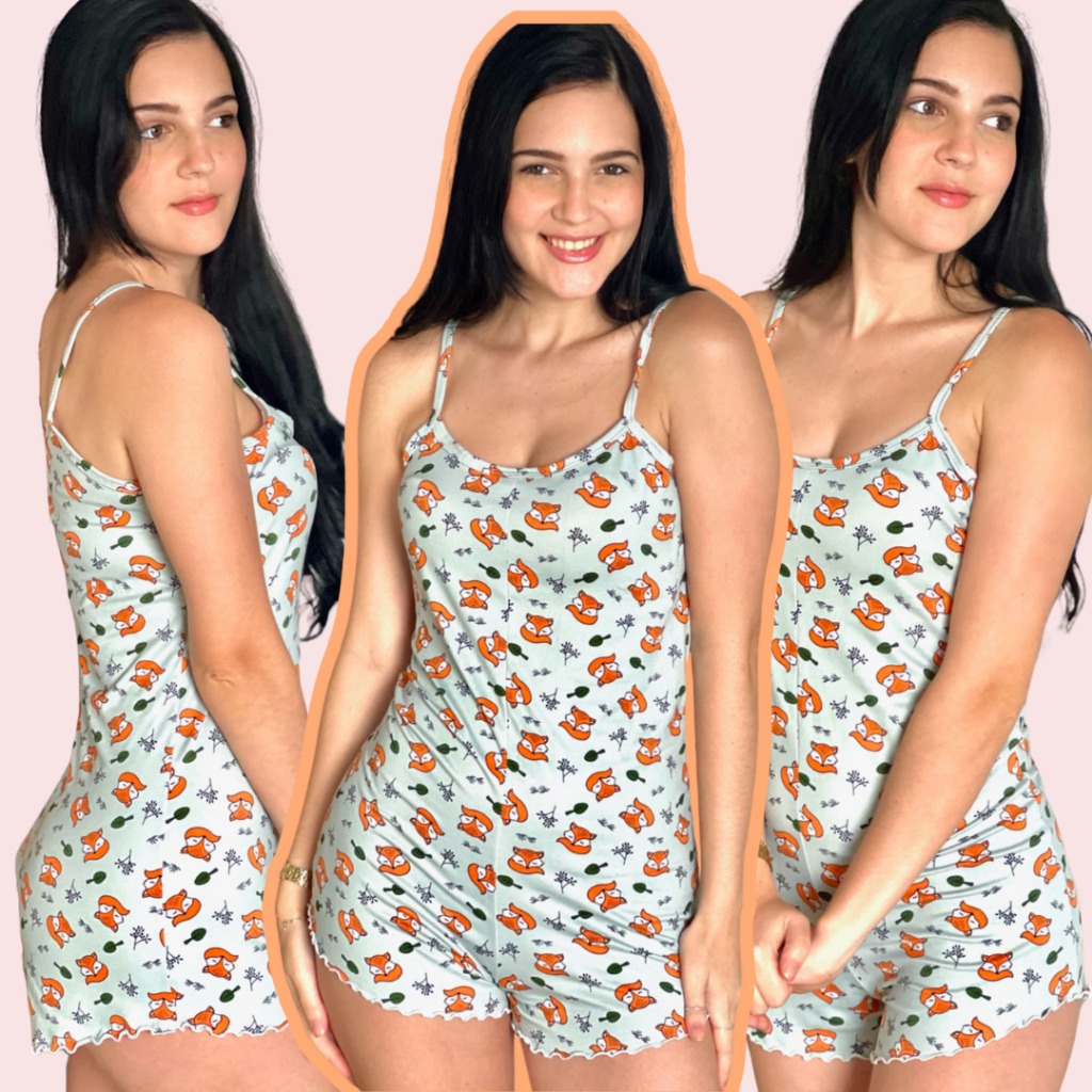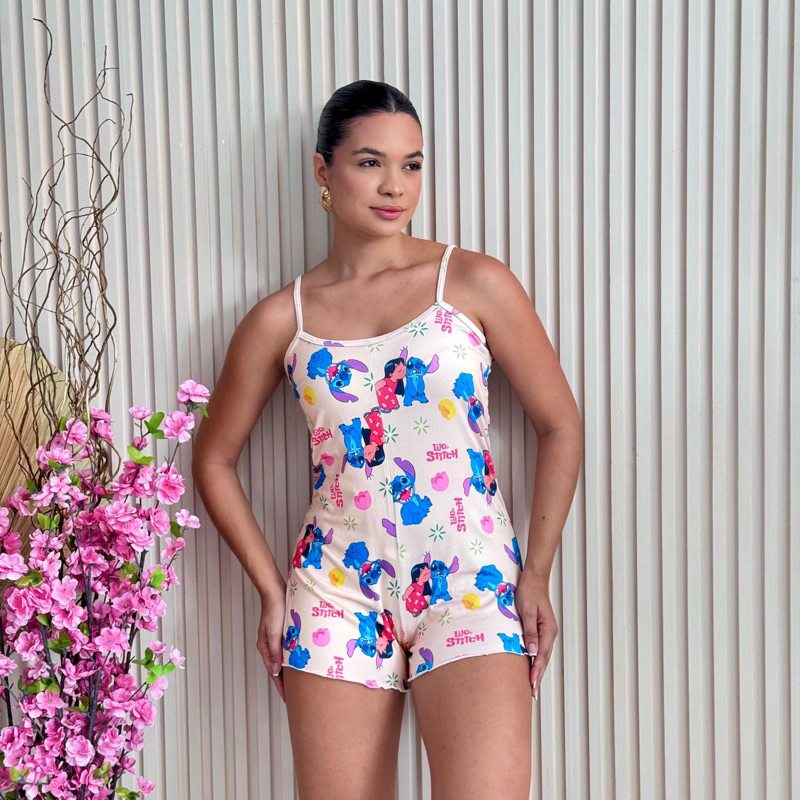 KIT 10 Macaquinhos Pijama Estampado Personagens Design Ondinha Alça Regulável Roupa de Dormir