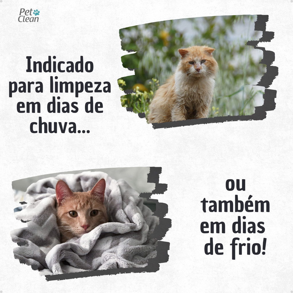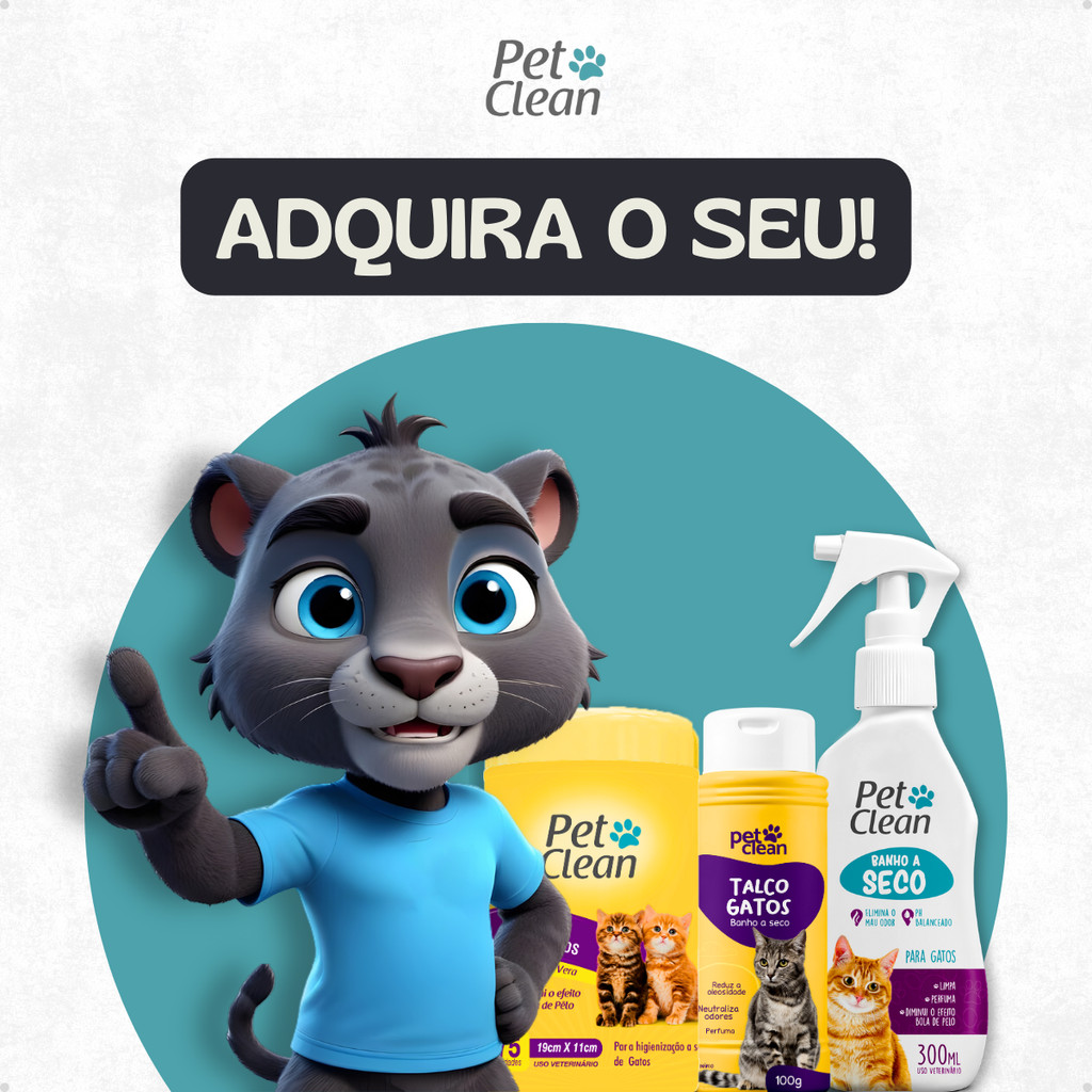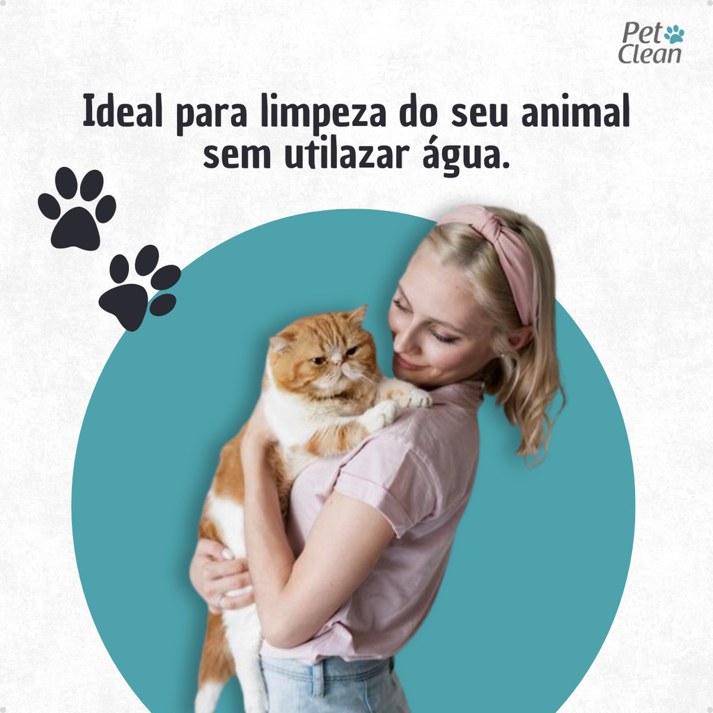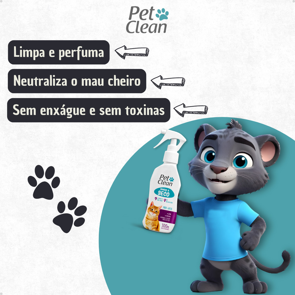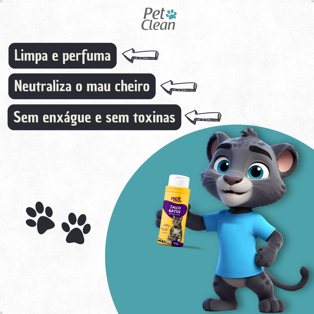 Kit Banho a Seco Gatos 300ml Pet Clean + Lenço Umedecido Gato 75 unids + Talco Pet Clean 100g Gatos