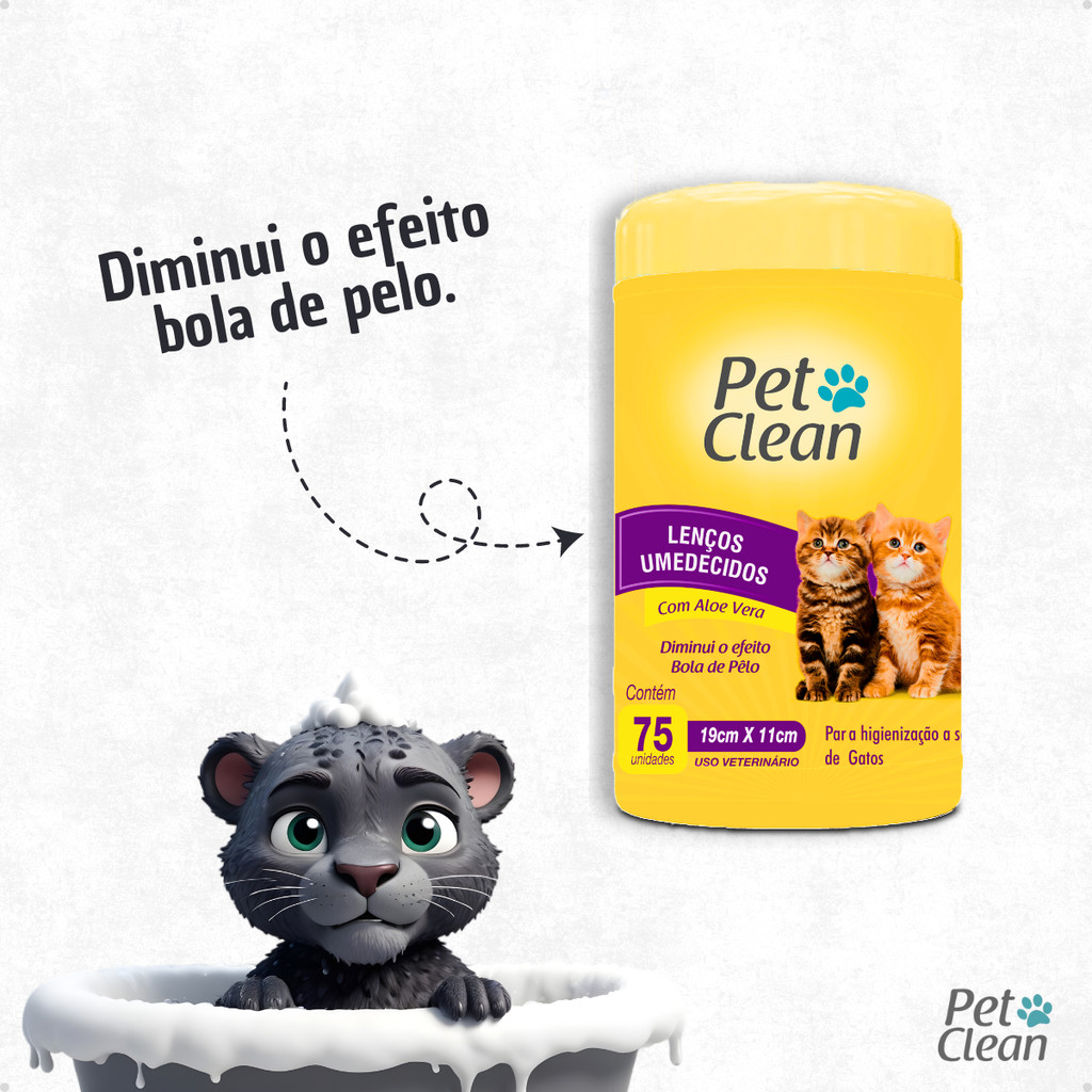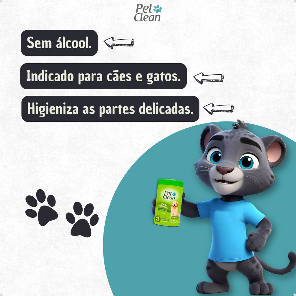 Lenço Umedecido Toalhas Umedecidas para Cachorro e Gato Pet Clean - 75 Unidades