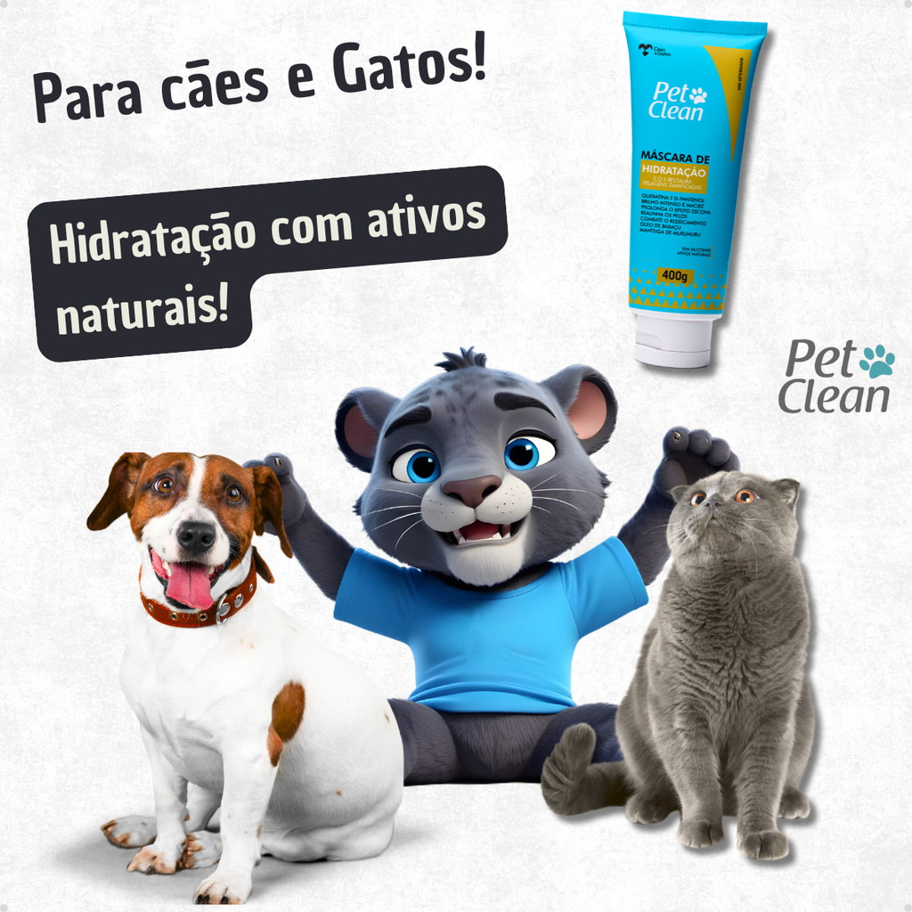 Máscara de Hidratação Ativos Naturais Pelos Danificados Brilho Maciez Cachorro Gato Pet Clean 400 g