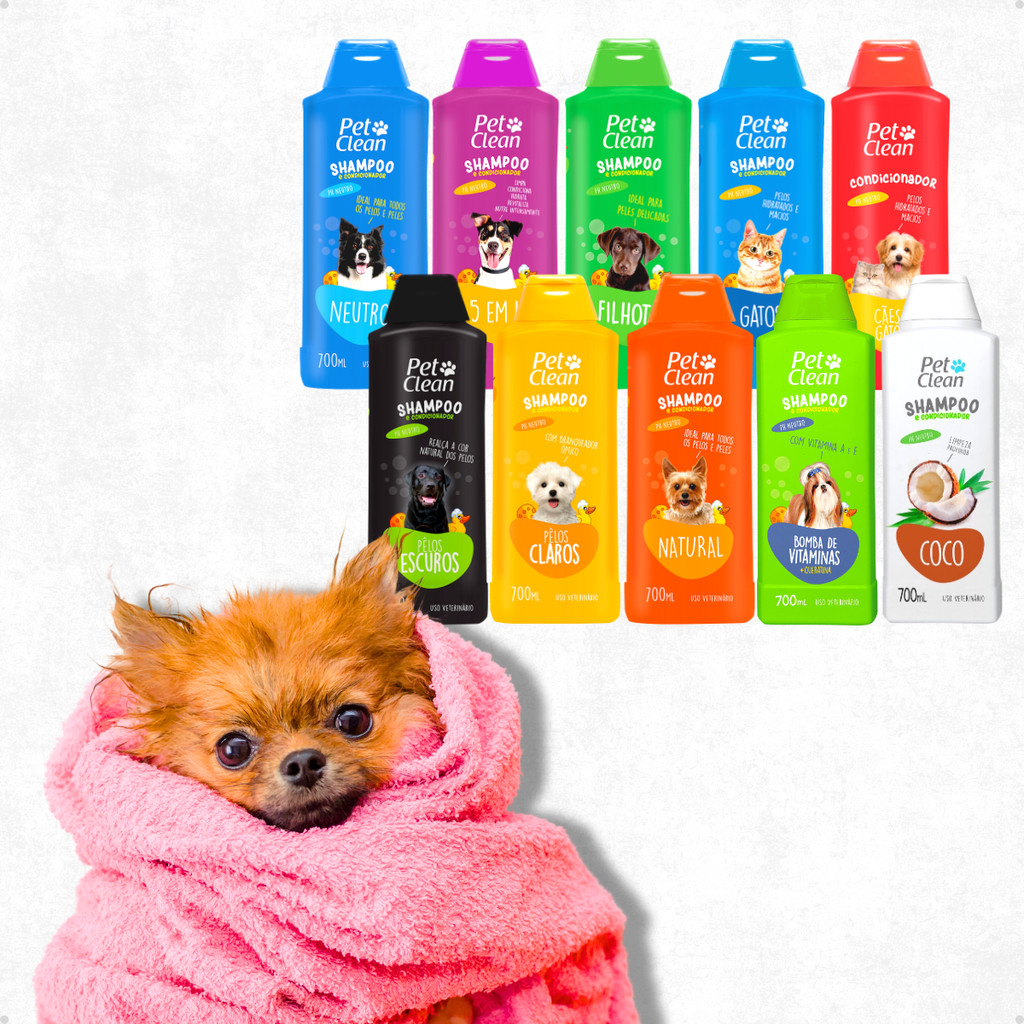 Shampoo e Condicionador Pet Shop para Cachorro e Gato Pet Clean - 700 ml