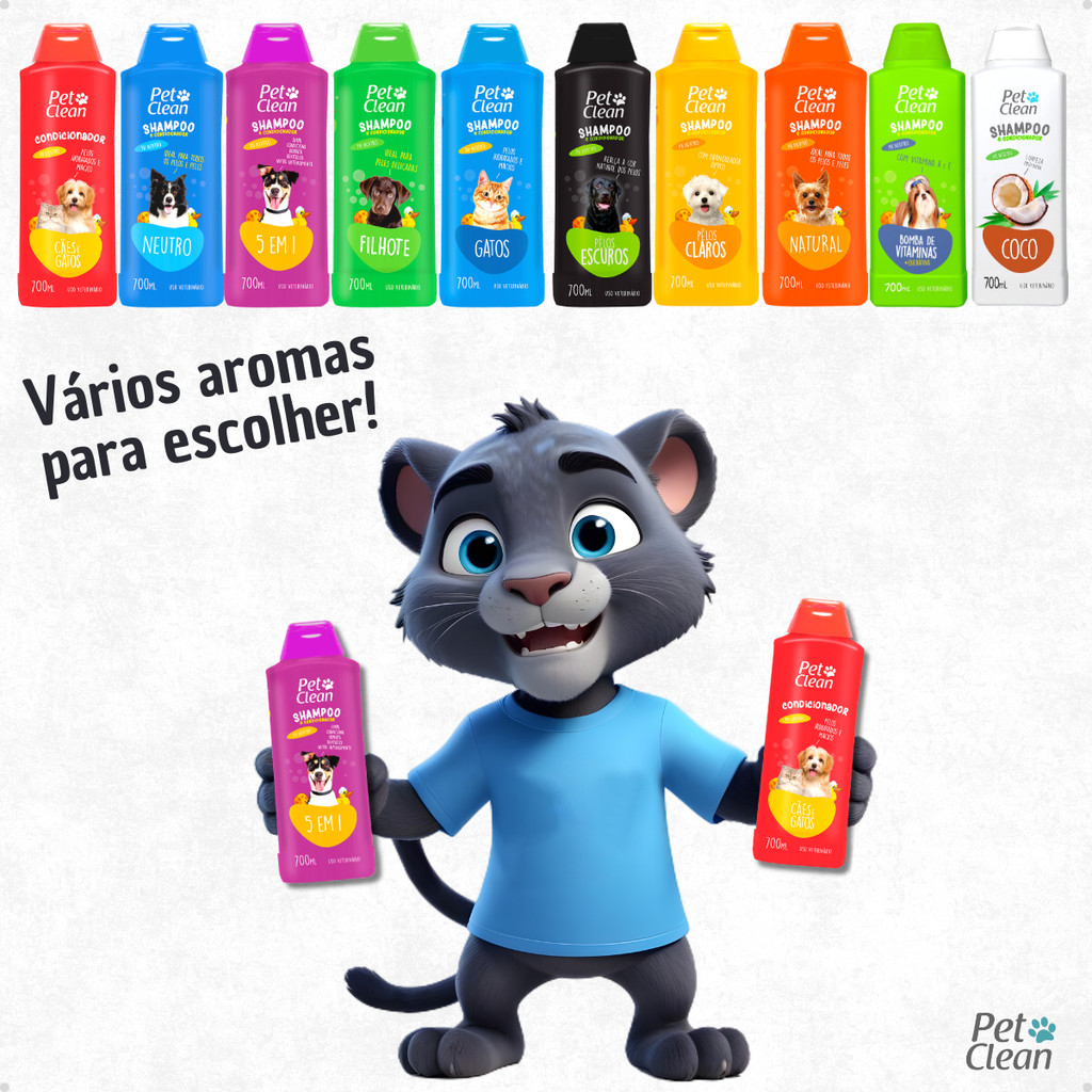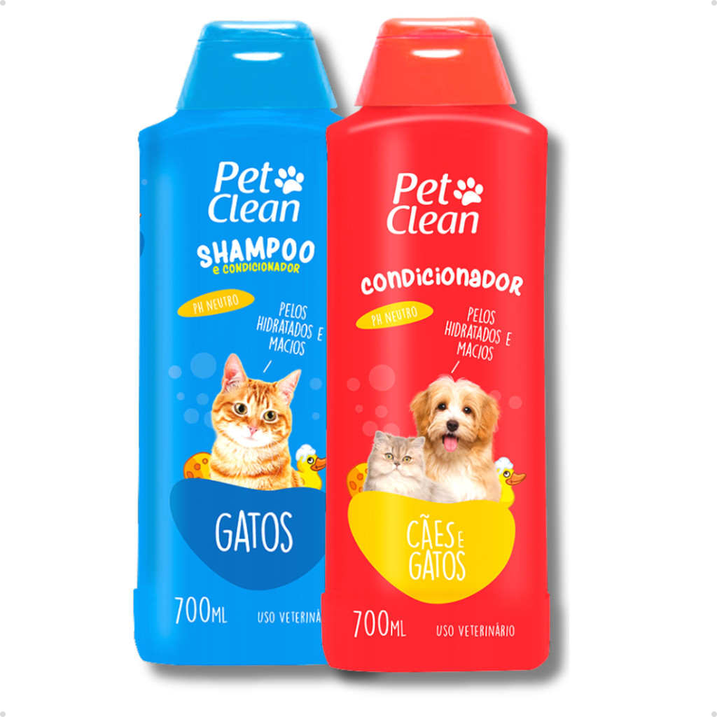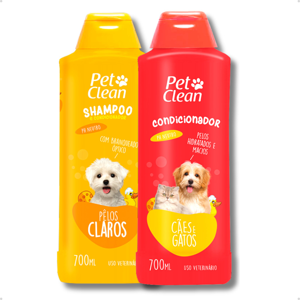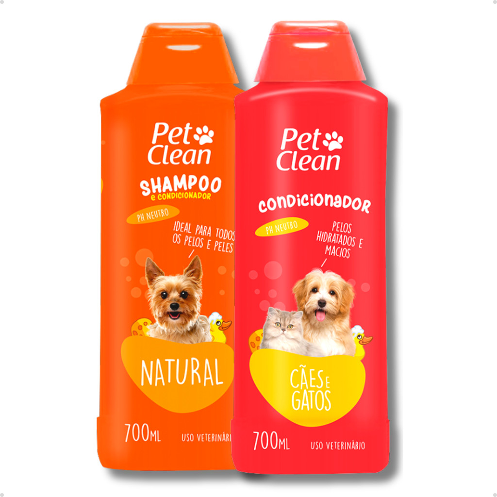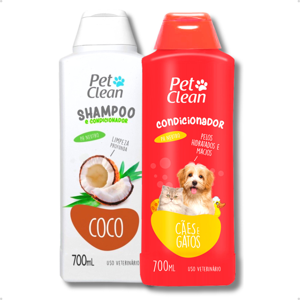 Kit Banho Shampoo Pet Shop + Creme Condicionador de Pelos para Cachorro e Gato Pet Clean