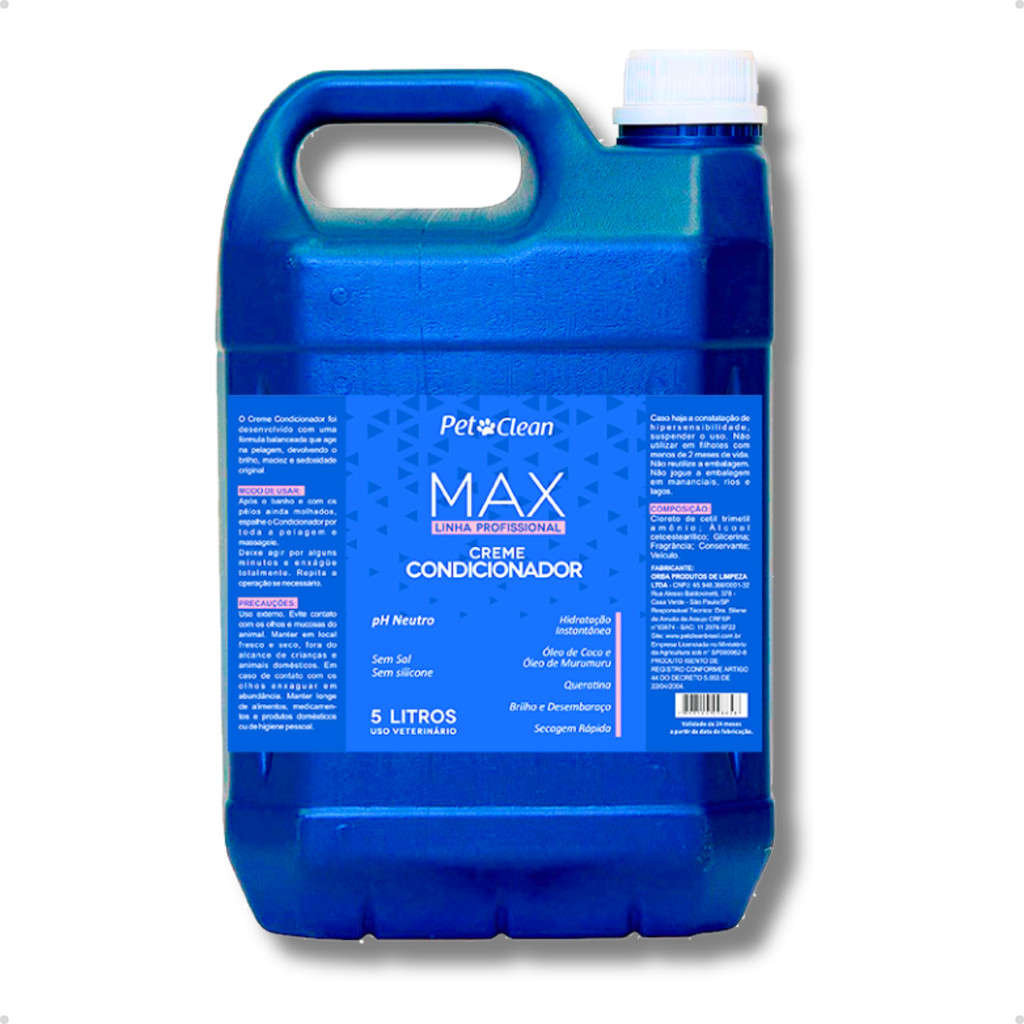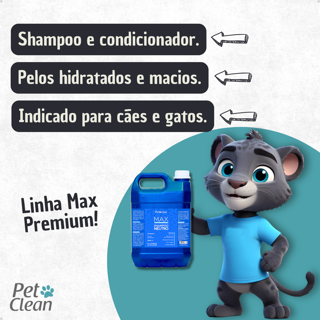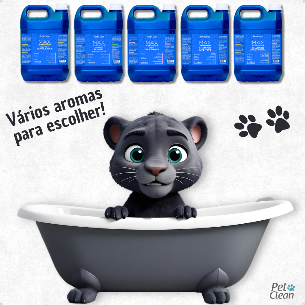 Shampoo Condicionador Linha Max Premium Pet Shop 5 Litros Cachorro e Gato Pet Clean Vários Aromas