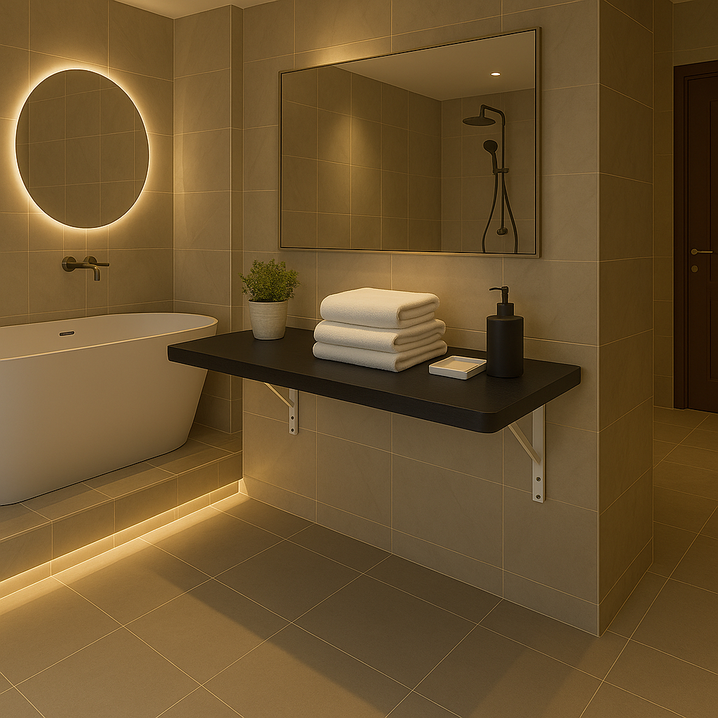 Mesa Dobravel Retratil de Parede Suspensa Borda Redonda 90Cm 100Cm 120Cm Para Banheiro Quarto Sala Cozinha