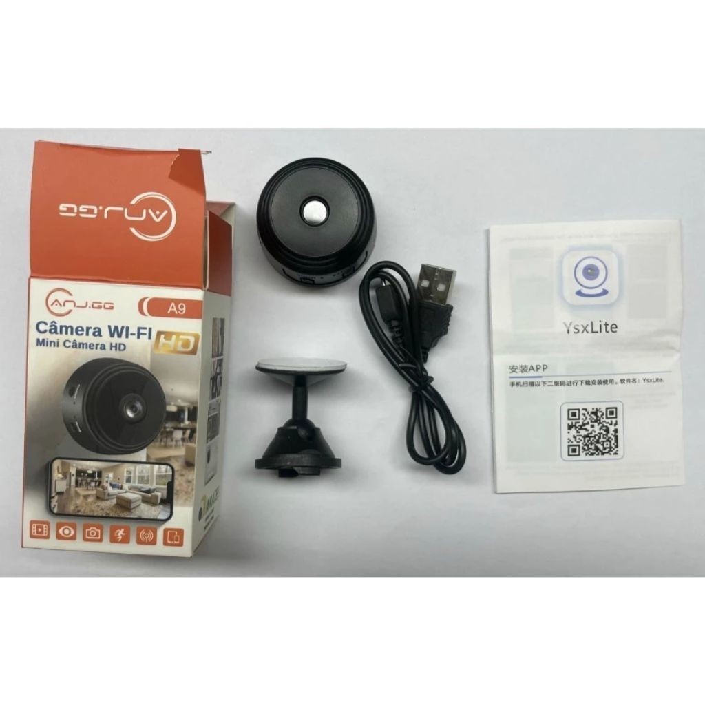 Kir 2 Câmera A9 Mini HD com Sensor de Presença Wi-Fi 110V e Suporte para Encaixe Preto