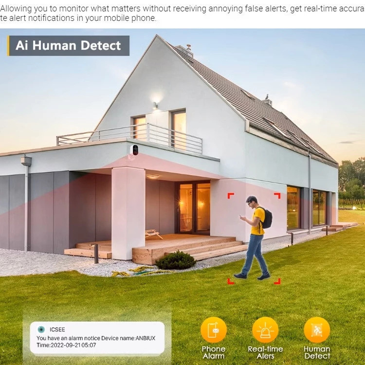 Câmera de segurança com monitoramento remoto, sem fio, recarregável, dia e noite, visão HD ICSEE