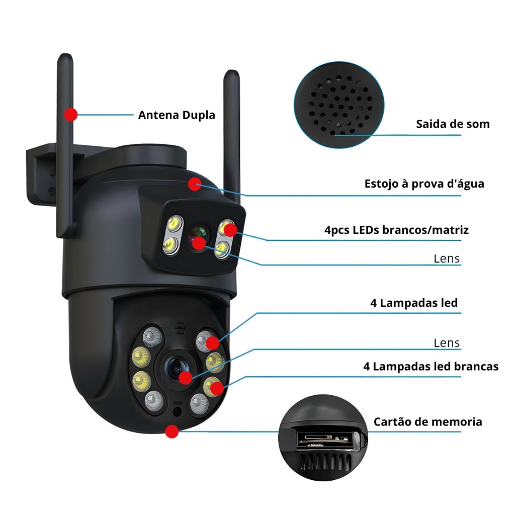 Kit 2 Câmera De Segurança a Prova de água Lente Dupla APP YOOSEE IP66 Camera IP WiFi 360 Cor Preto