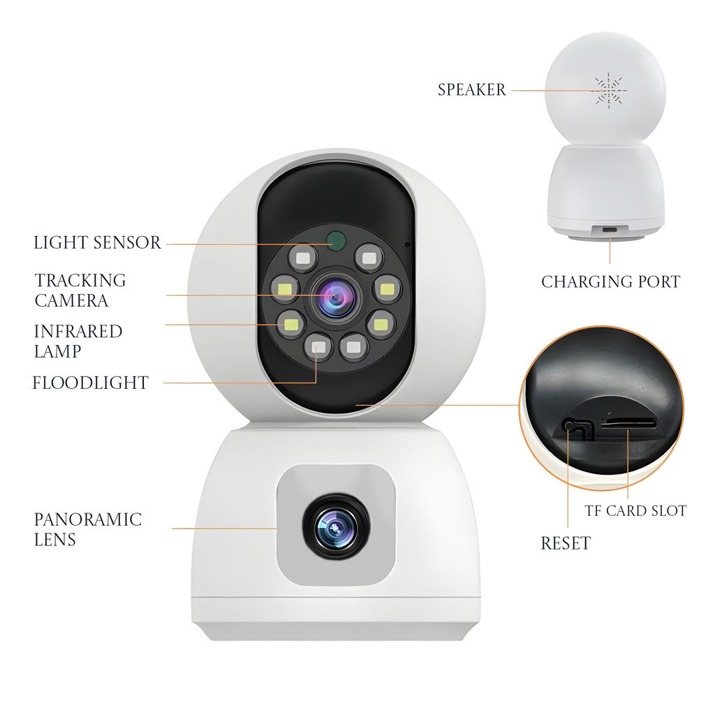 Câmera Duas Lentes IP Wifi FULL HD 1080P com visão noturna fixa e 360° Auto Track