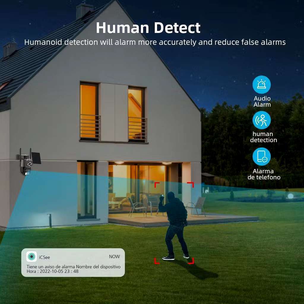 Câmera de Segurança 4G Solar com Bateria 10800mAh, IP66, PTZ 355°/90°, Detecção Humana, Áudio 2 Vias (iCSee)