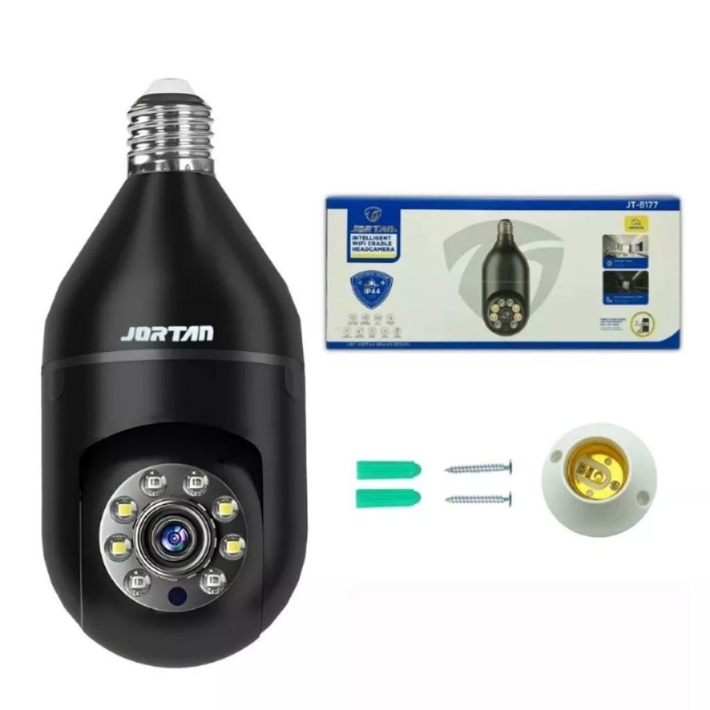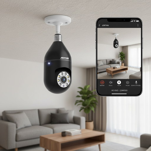 Câmera de Vigilância Wi-Fi 360° Preta com Áudio Bidirecional, Visão Noturna e Sensor de Movimento – com App YOOSEE