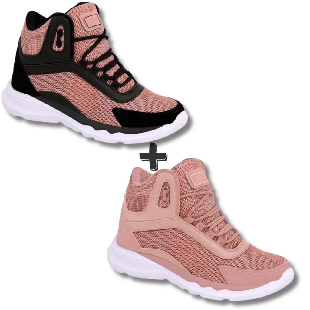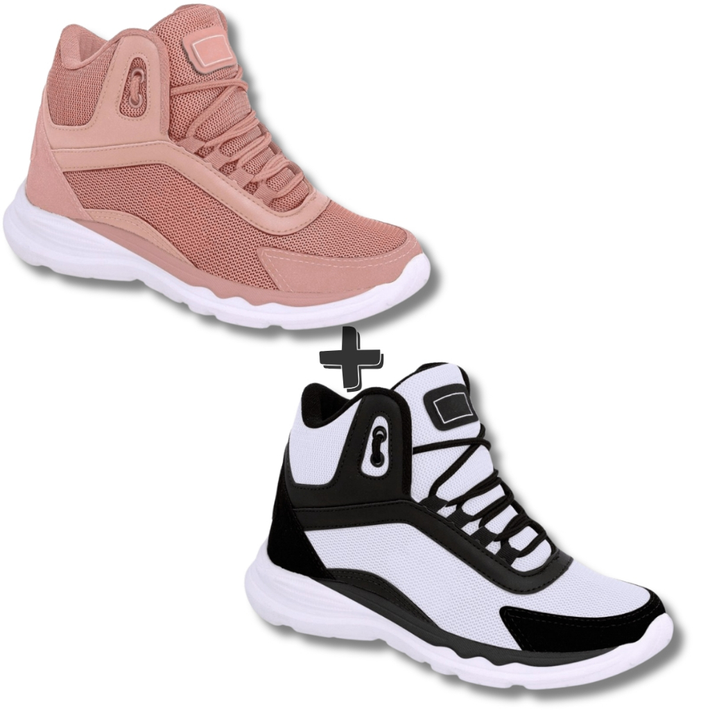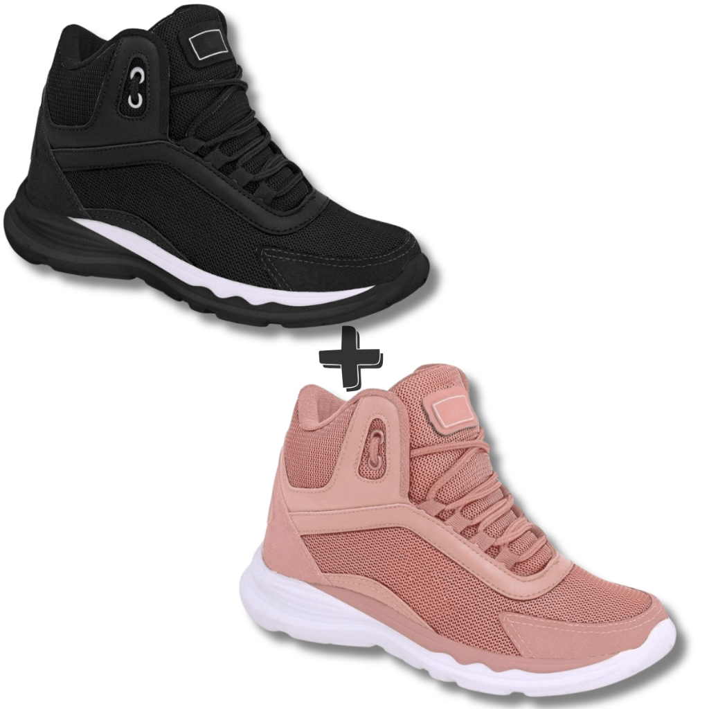 Kit 2 Pares Bota Feminina Botinha Coturno Academia Casual Tênis Confortável Caminhada Trabalho