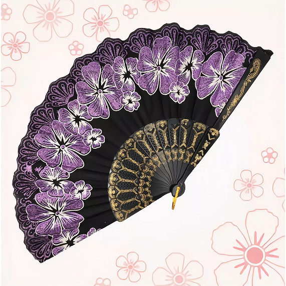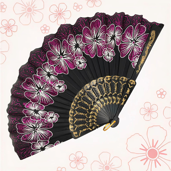 Leque Luxo com Decoração Brilho para Abanar FLOR