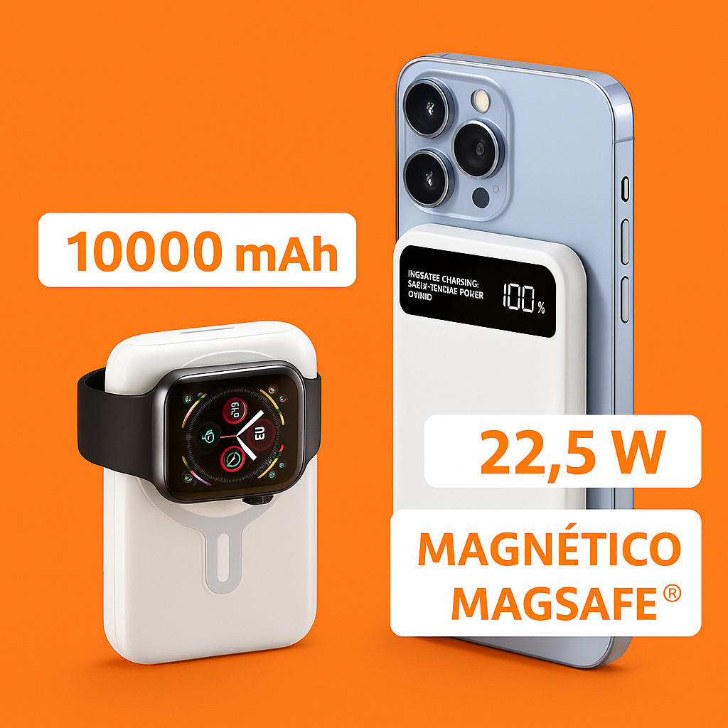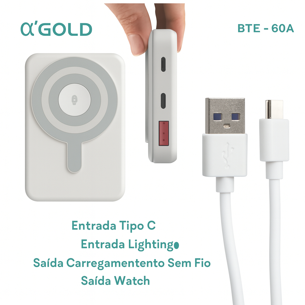 Power Bank A'GOLD PRO 10000mAh 22.5W Turbo com Carregamento Sem Fio Magnético BTE-60A