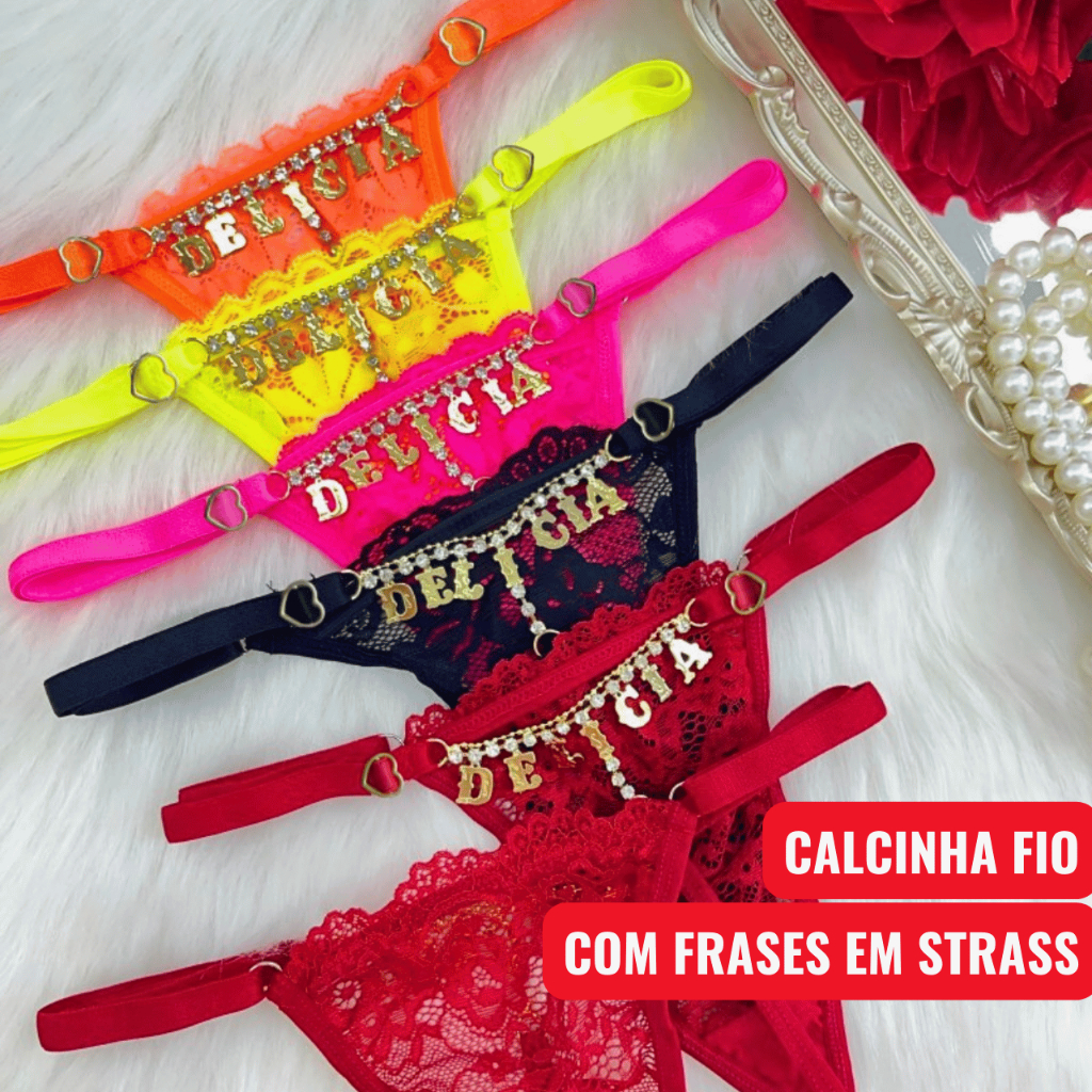Calcinha Fio Com Frases Picantes Personalizadas Sensual Strass Regulagem De Renda Sex Shop Sex Casal