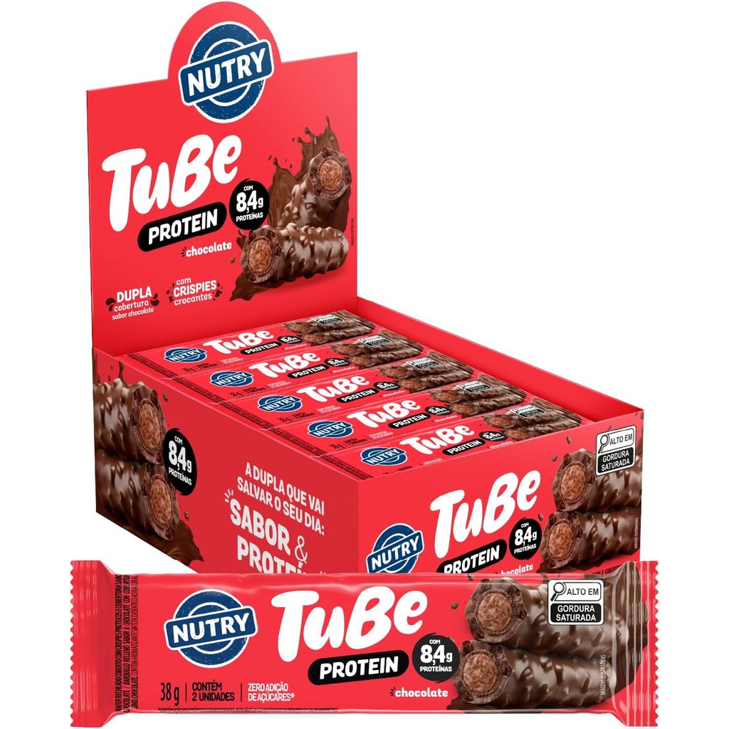 Chocolate Tube Protein 8,4g Proteina Chocolate Nutry Com 12 Unidades De 38g