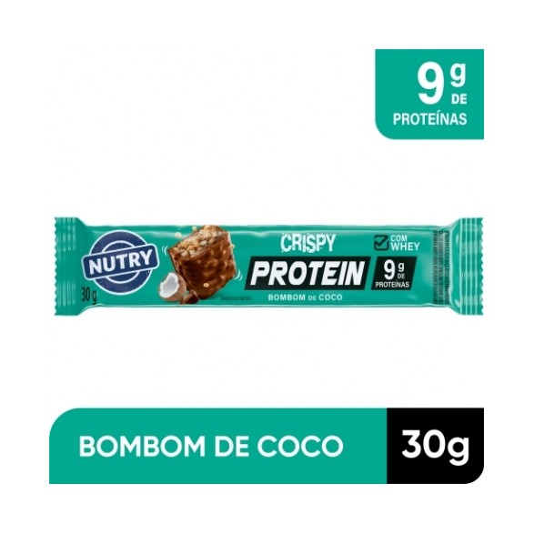 Barra De Proteina Crispy Bombom De Coco 9g Proteina Nutry Com 12 Unidades De 30g