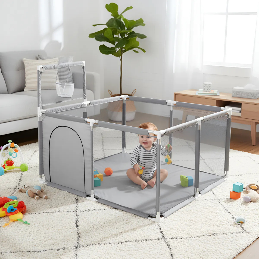 Cercadinho para criança e bebe chiqueirinho infantil com cesta Basquete menino menina.