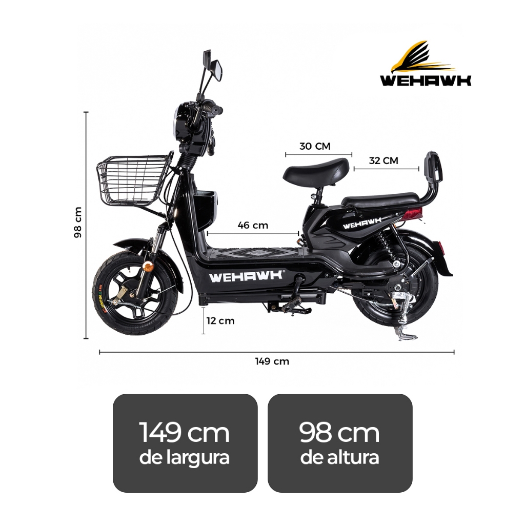 Scooter Elétrica Scooter WeHawk 500W Basket WX-03 – Sem CNH e Emplacamento com Bateria Removível 🇧🇷
