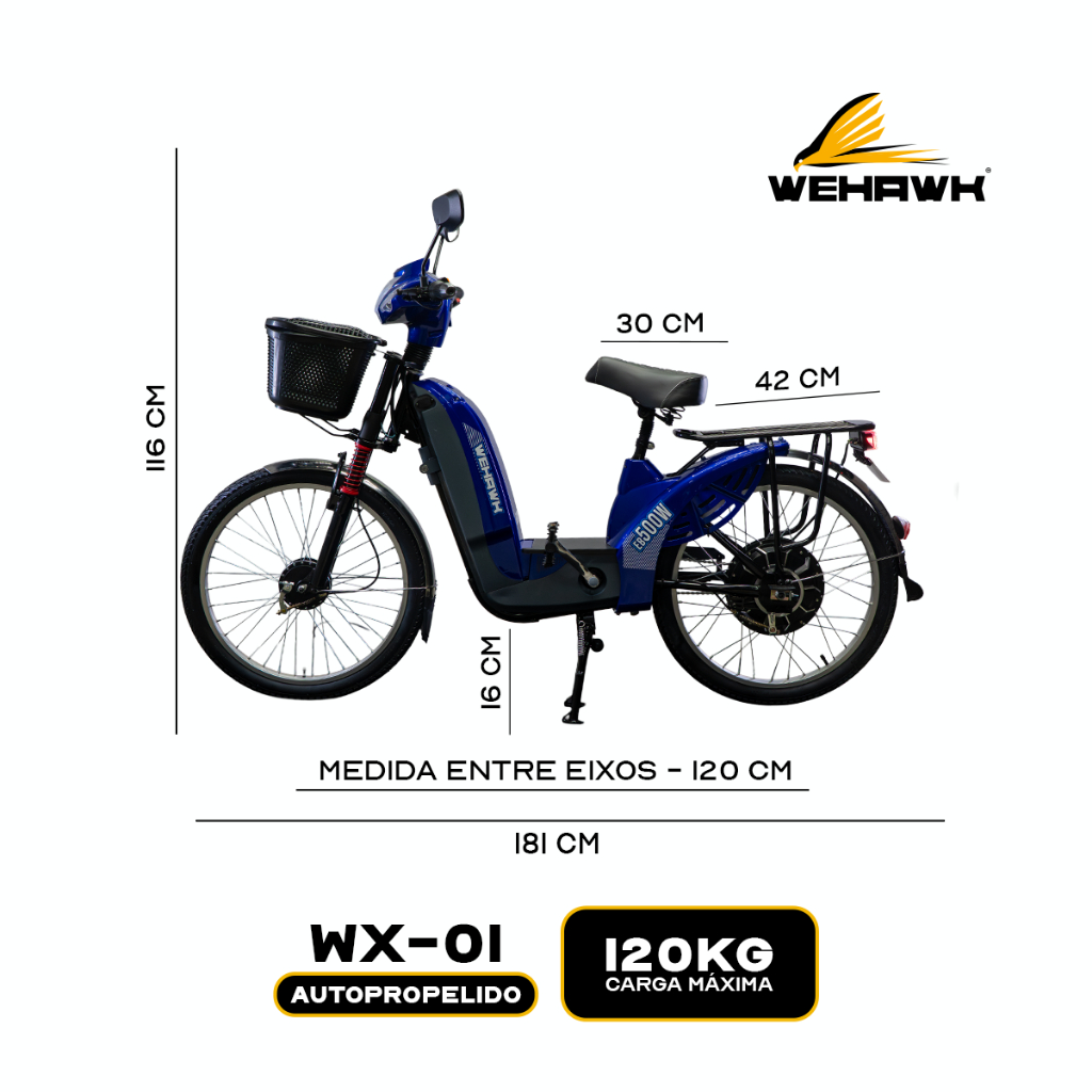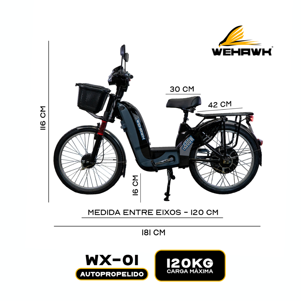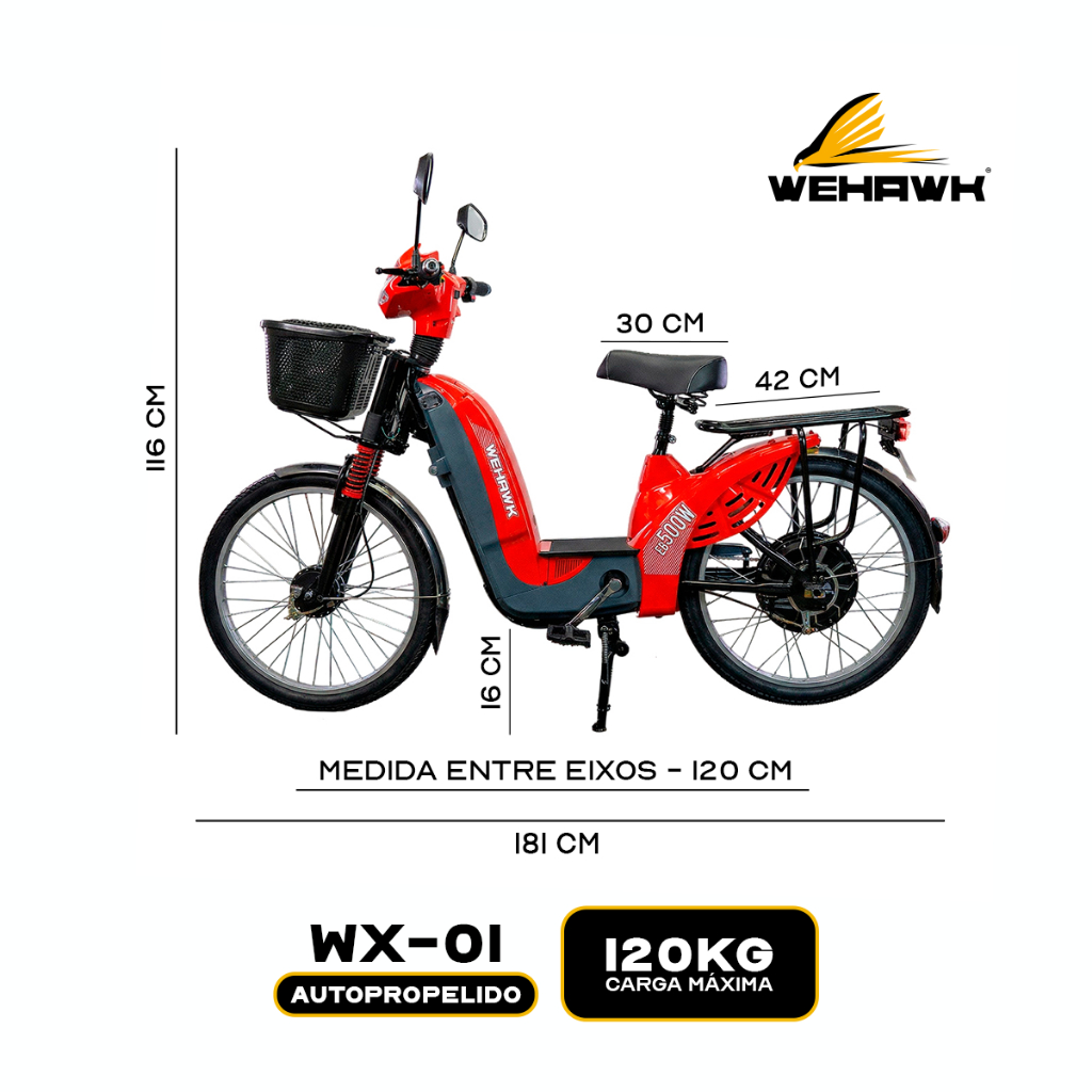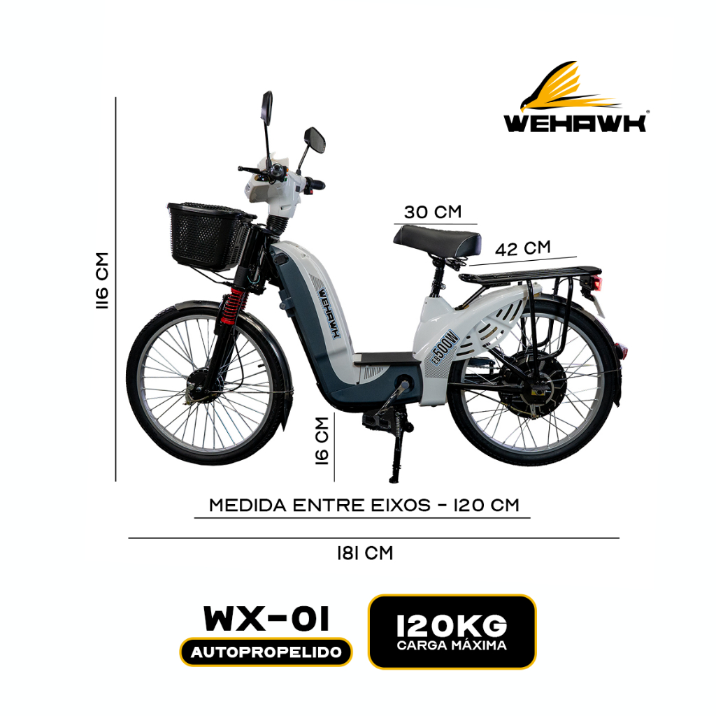 Bicicleta Scooter Elétrica 500W WeHawk EB com Bateria Chumbo Removível Sem CNH 🇧🇷