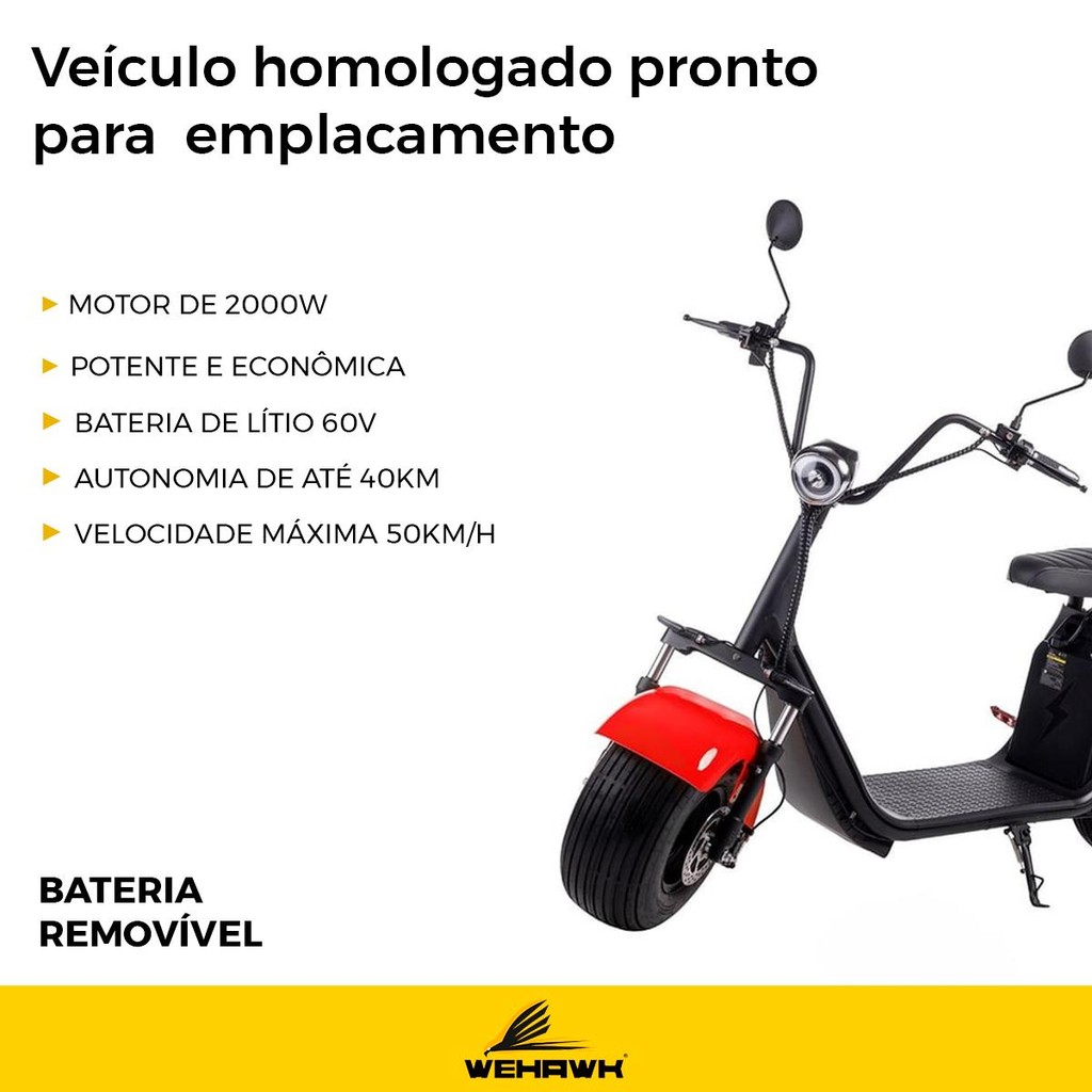 Scooter Moto Elétrica WeHawk WX-07 2000W 60V 20Ah 2 Pessoas – GE.05