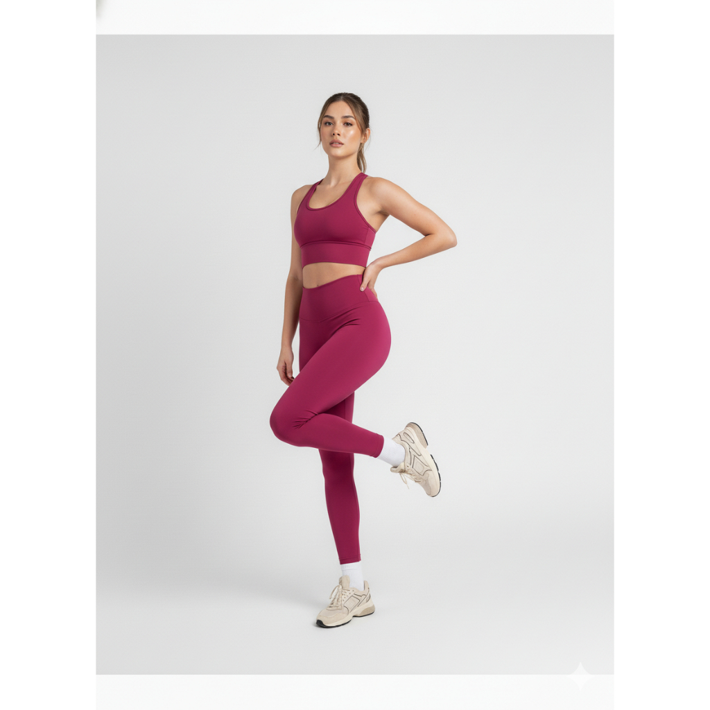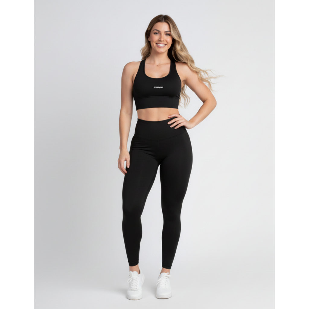 Conjunto de Academia Feminino Top e Calça Legging Rosa Preto Strep Fitness