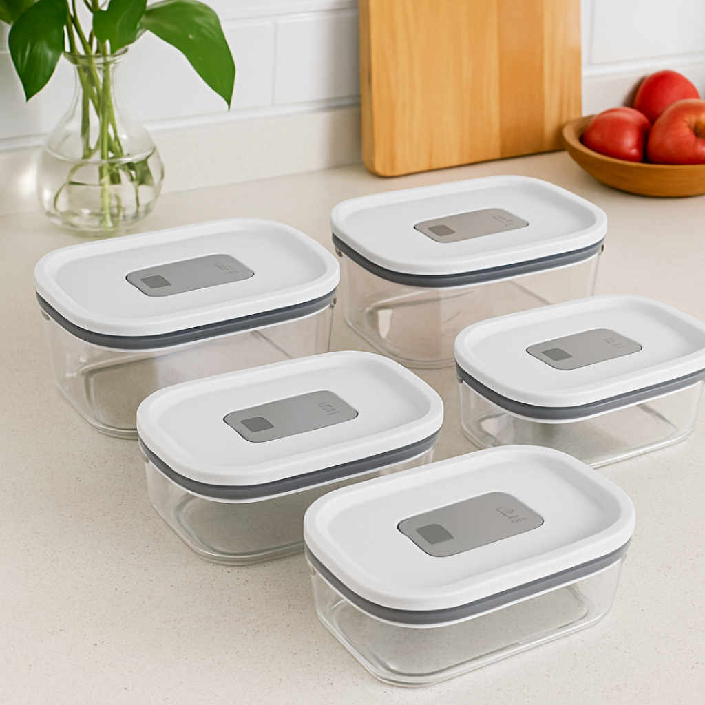 Kit com 5 Potes de Vidro Herméticos Fresh Lock 370ml